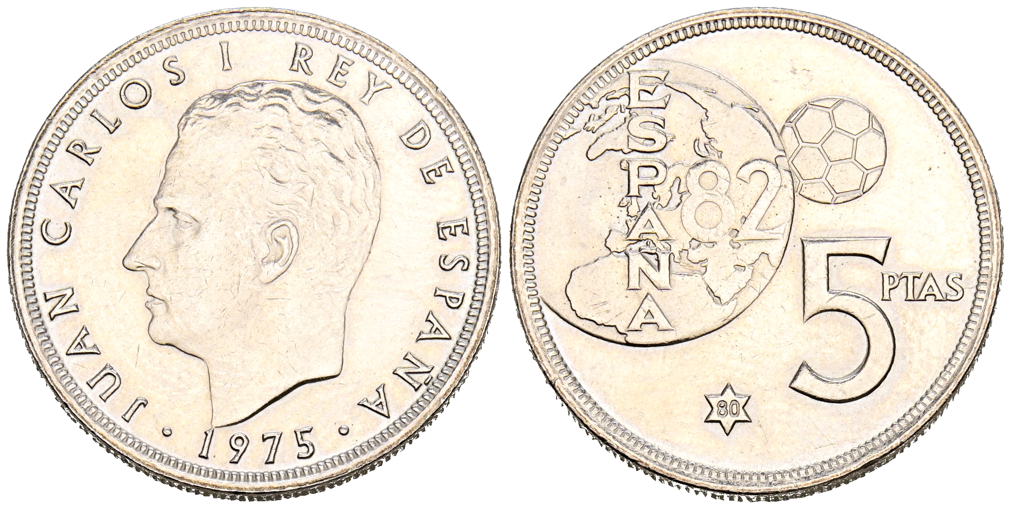 JUAN CARLOS I (1975-2014). 5 Pesetas. (CuNi. 5,75g/23mm). 1975 *80. (Cal-2019-40). Error del Mundial ´82. SC.