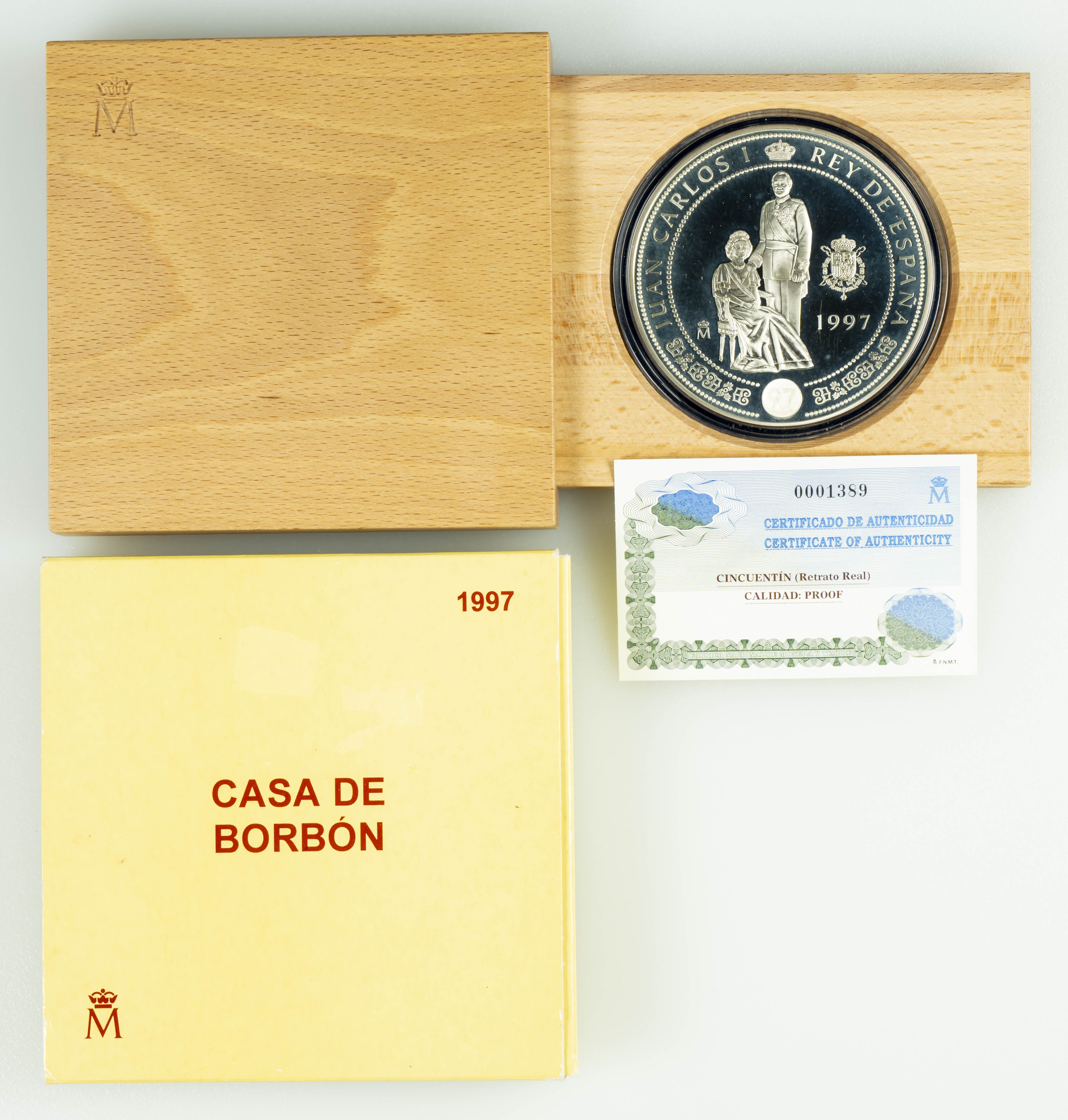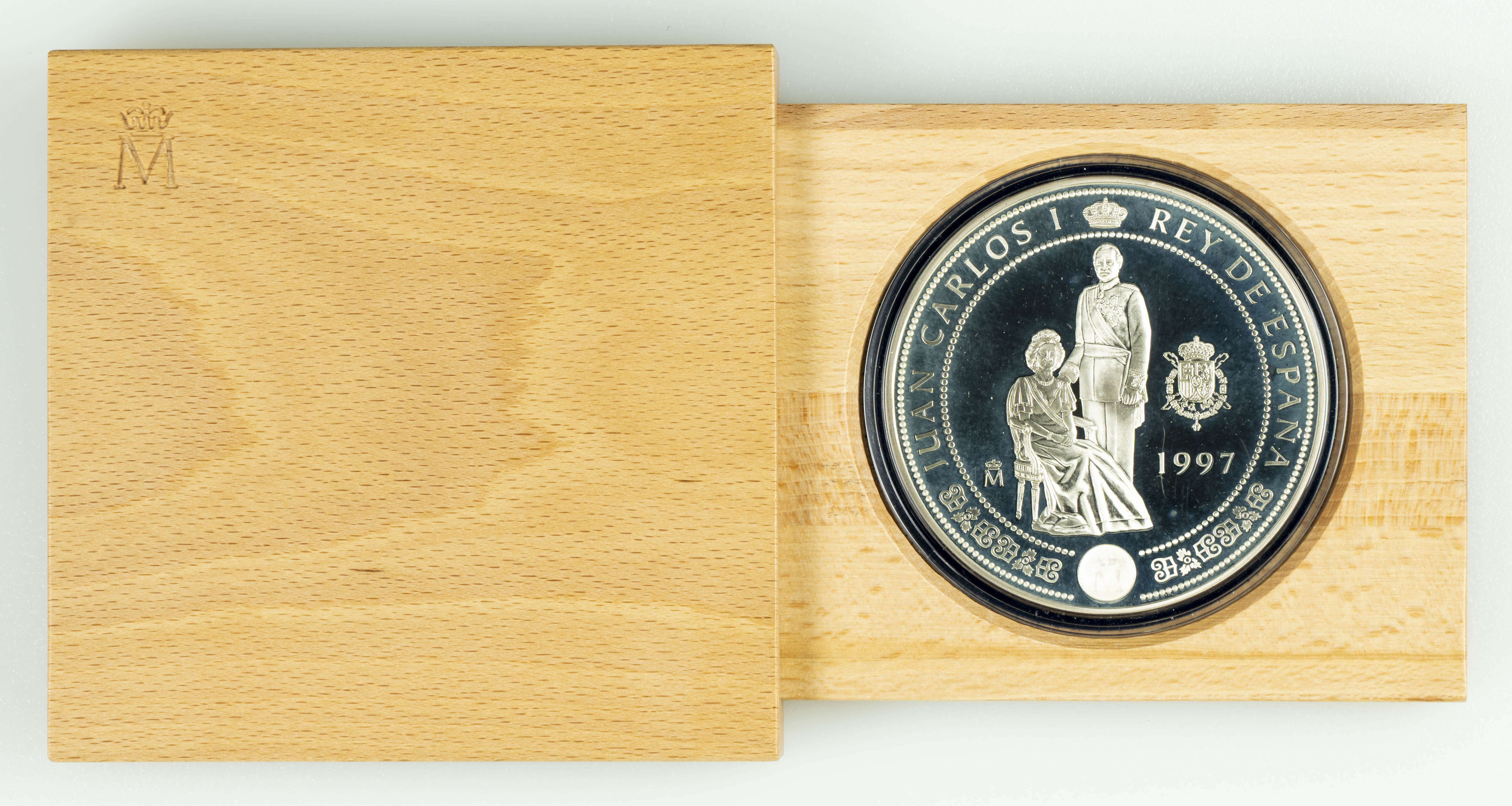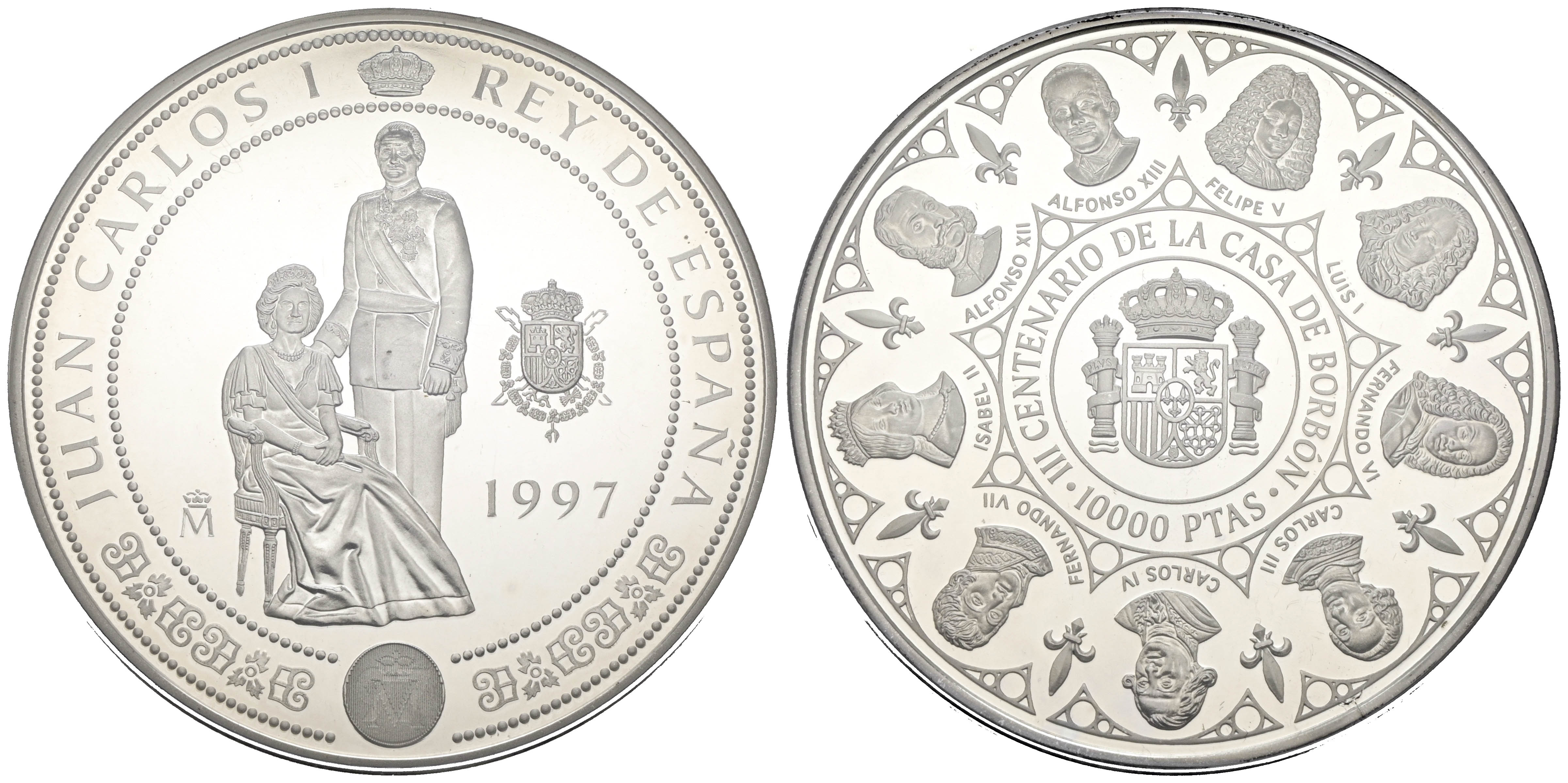 JUAN CARLOS I (1975-2014). 10.000 Pesetas (Ar. 168,75g/73mm). Casa de Borbón. Retrato Real. 1997. FNMT. PROOF. Incluye estuche original y certificado de autenticidad. Tirada de 12.000 unidades.