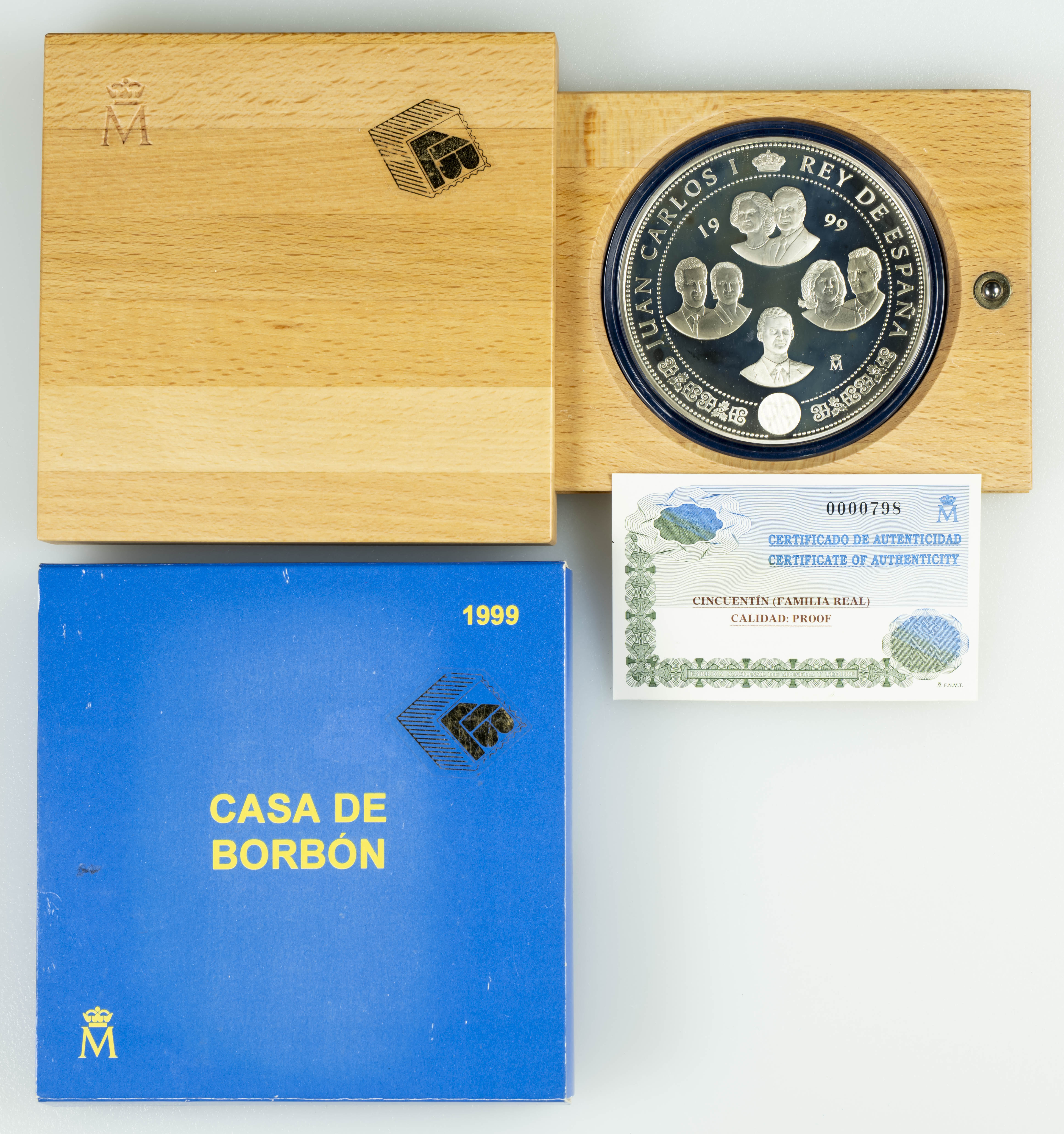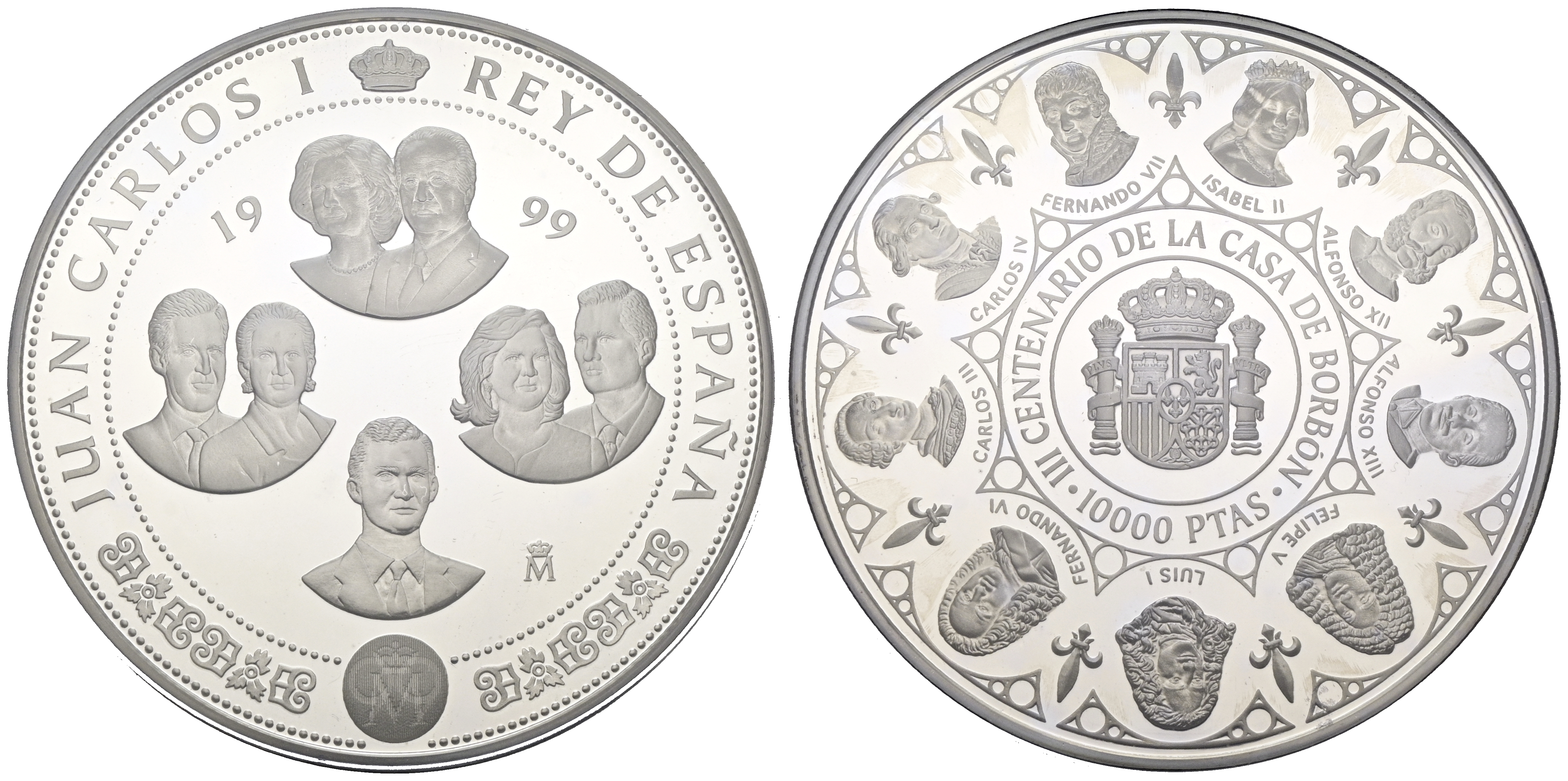 JUAN CARLOS I (1975-2014). 10.000 Pesetas. (Ar. 168,75g/73mm). Casa de Borbón. 1999. FNMT. PROOF. Presentado en estuche oficial y con certificado de autenticidad. Tirada de sólo ocho mil unidades emitidas.