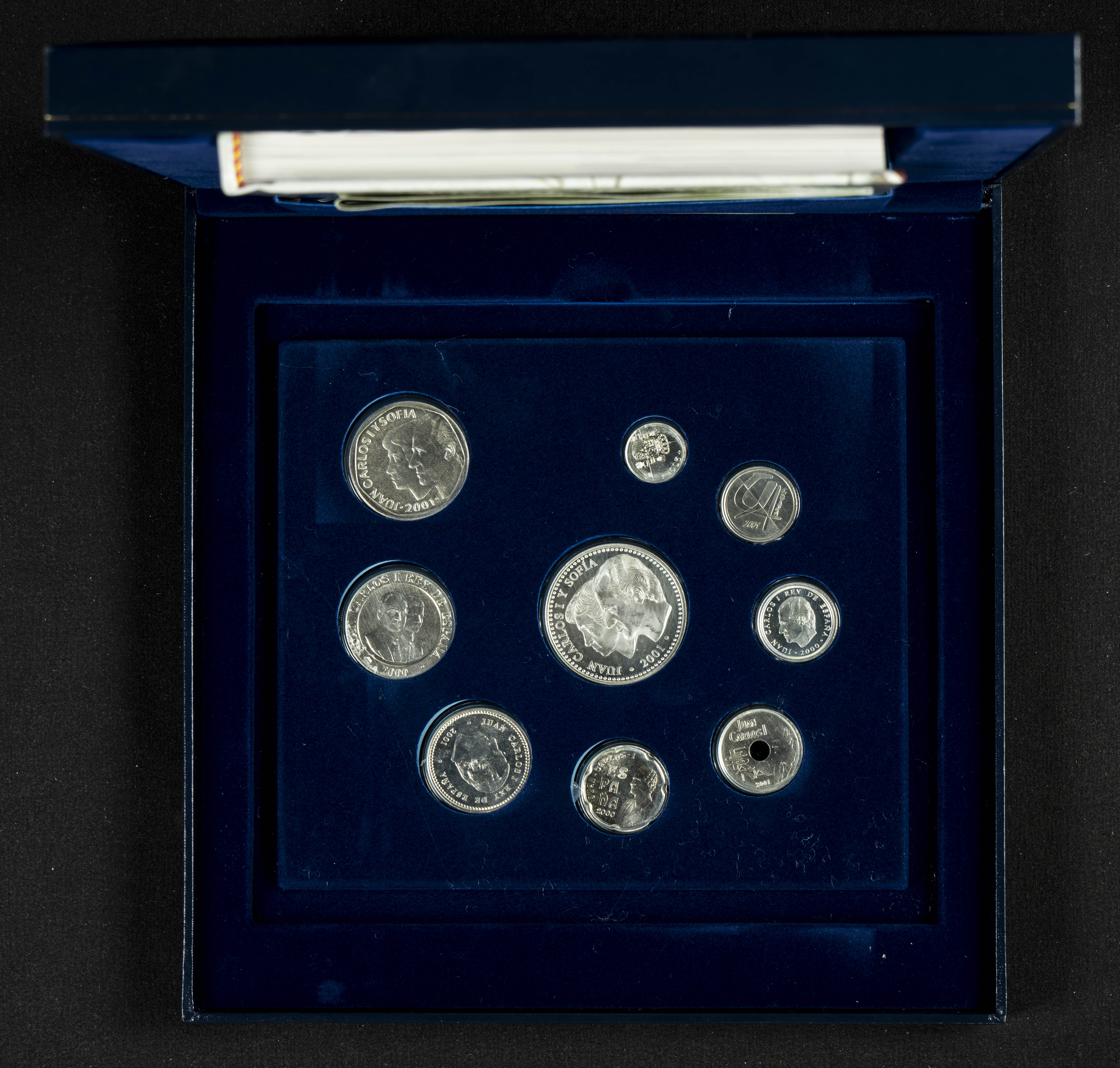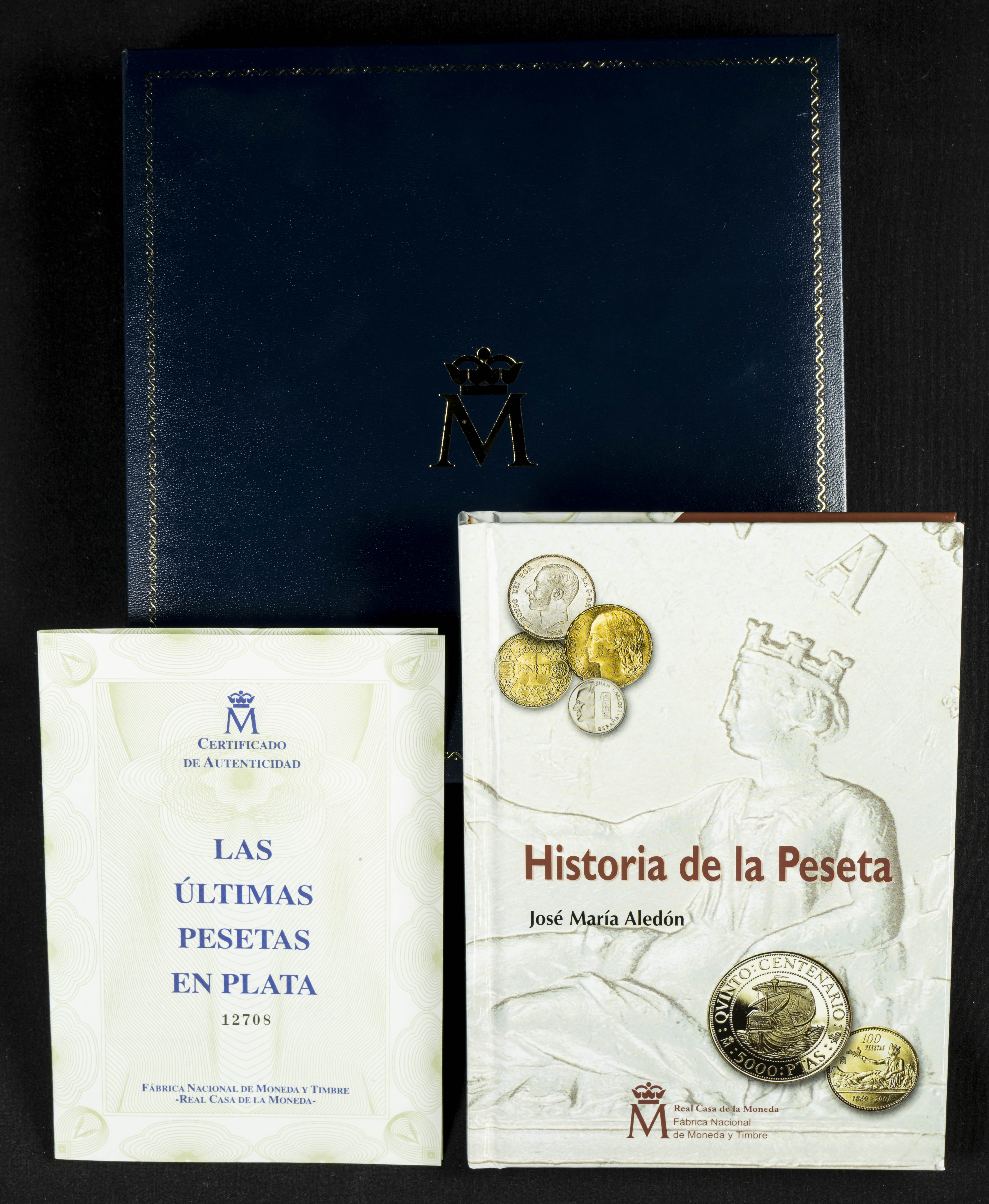 JUAN CARLOS I (1975-2014). Serie completa conmemorativa de Las Últimas Pesetas en Plata. Valores comprendidos entre 1 y 2000 Pesetas. 2000-2001. FNMT. PROOF. Presentadas en estuche oficial, incluyendo certificado y libro de Jose María Aledón: Historia de la Peseta.