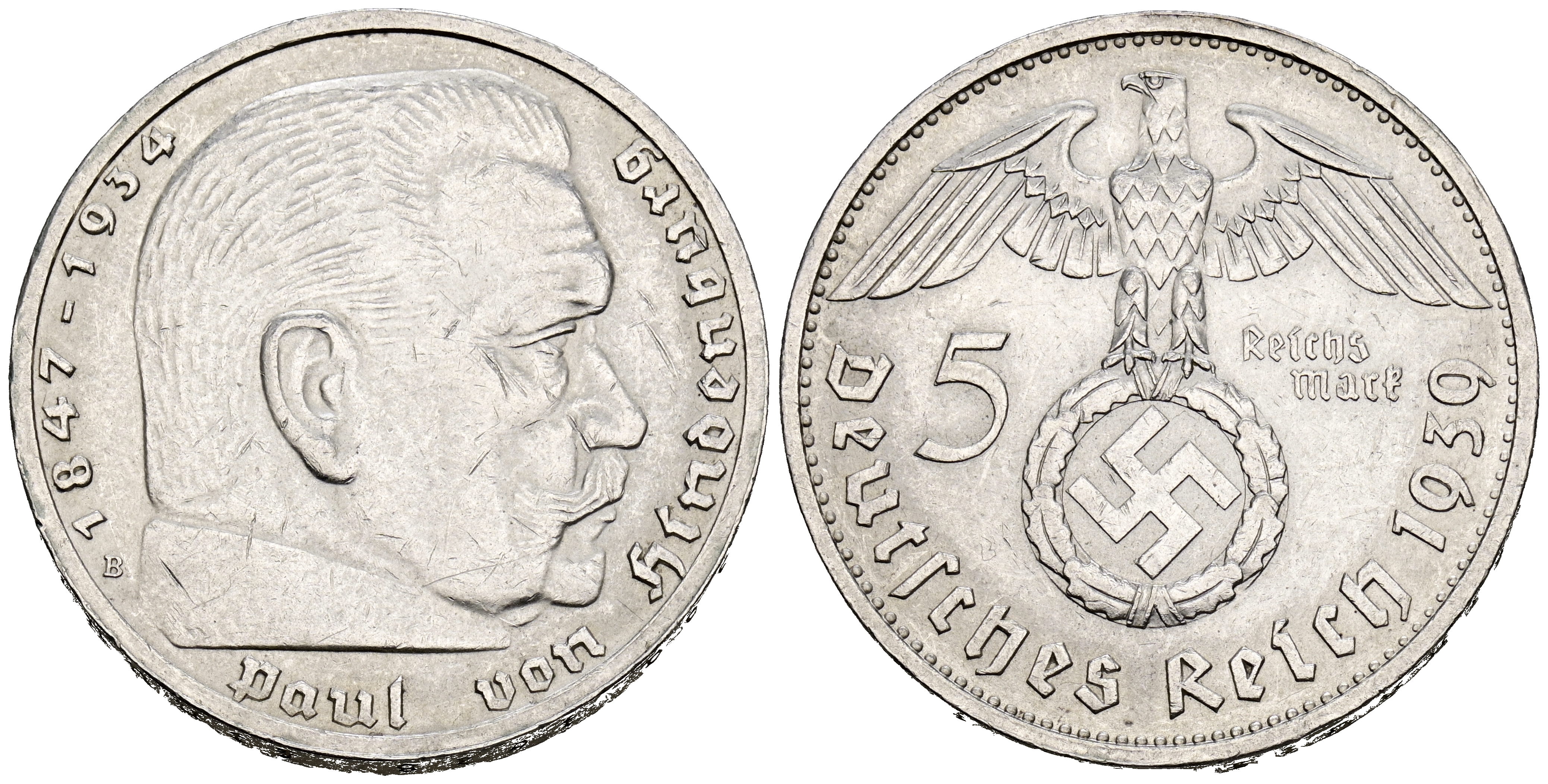 ALEMANIA. 5 Mark. (Ar. 13,89g/29mm). 1939. Viena B. (Km#94). EBC-. Marquitas.