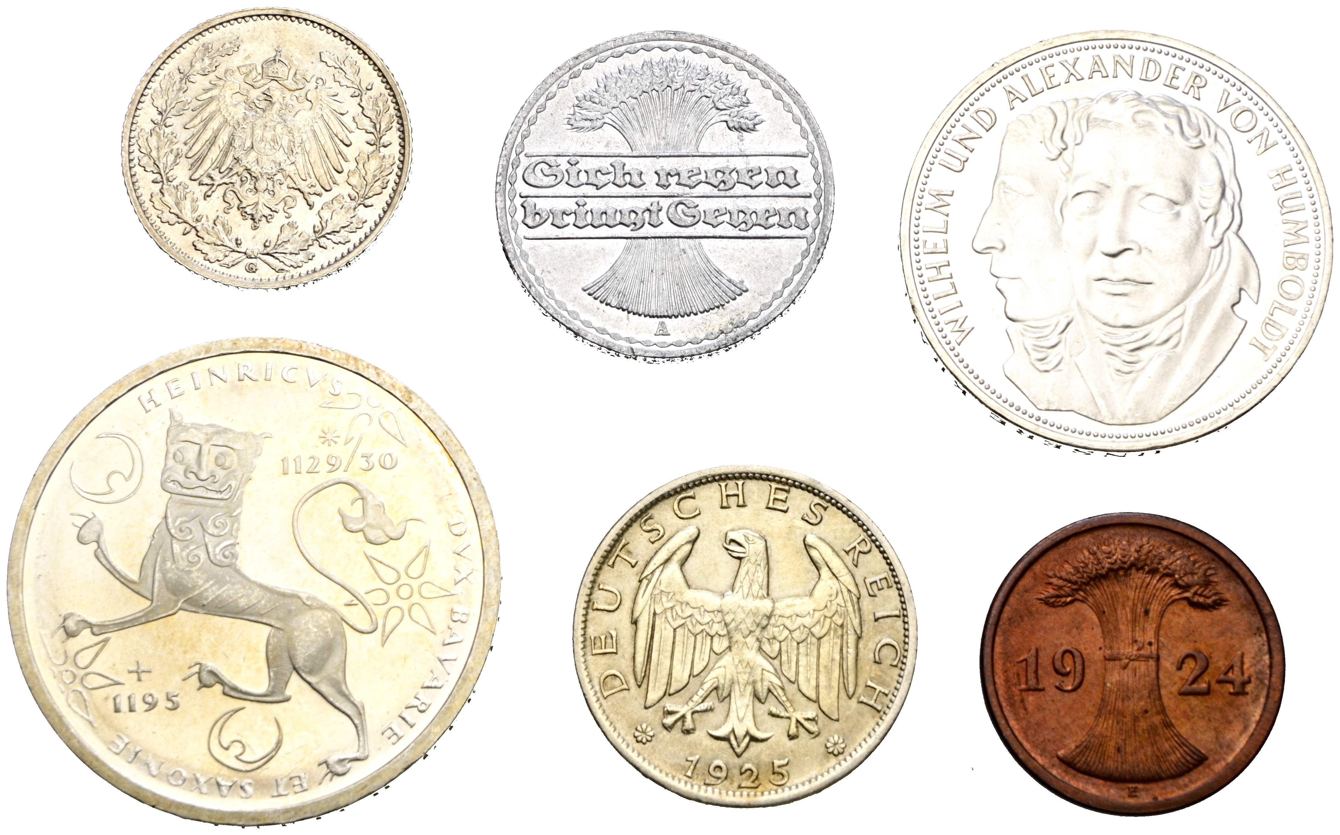 ALEMANIA. Extraordinario conjunto de 6 monedas de diferentes módulos y épocas (1916-1995) con unas excelentes calidades de conservación (EBC/EBC+). A EXAMINAR.