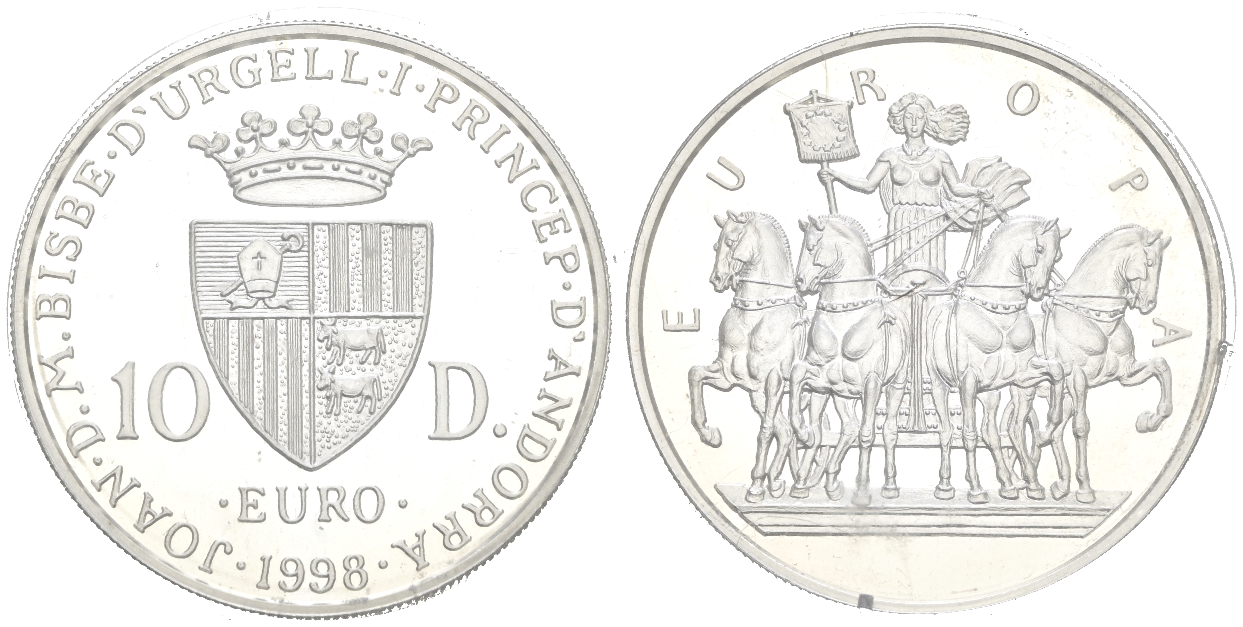 ANDORRA. 10 Diners. (Ae. 31,40g/38mm). 1998. Europa. (Km#151). PROOF.