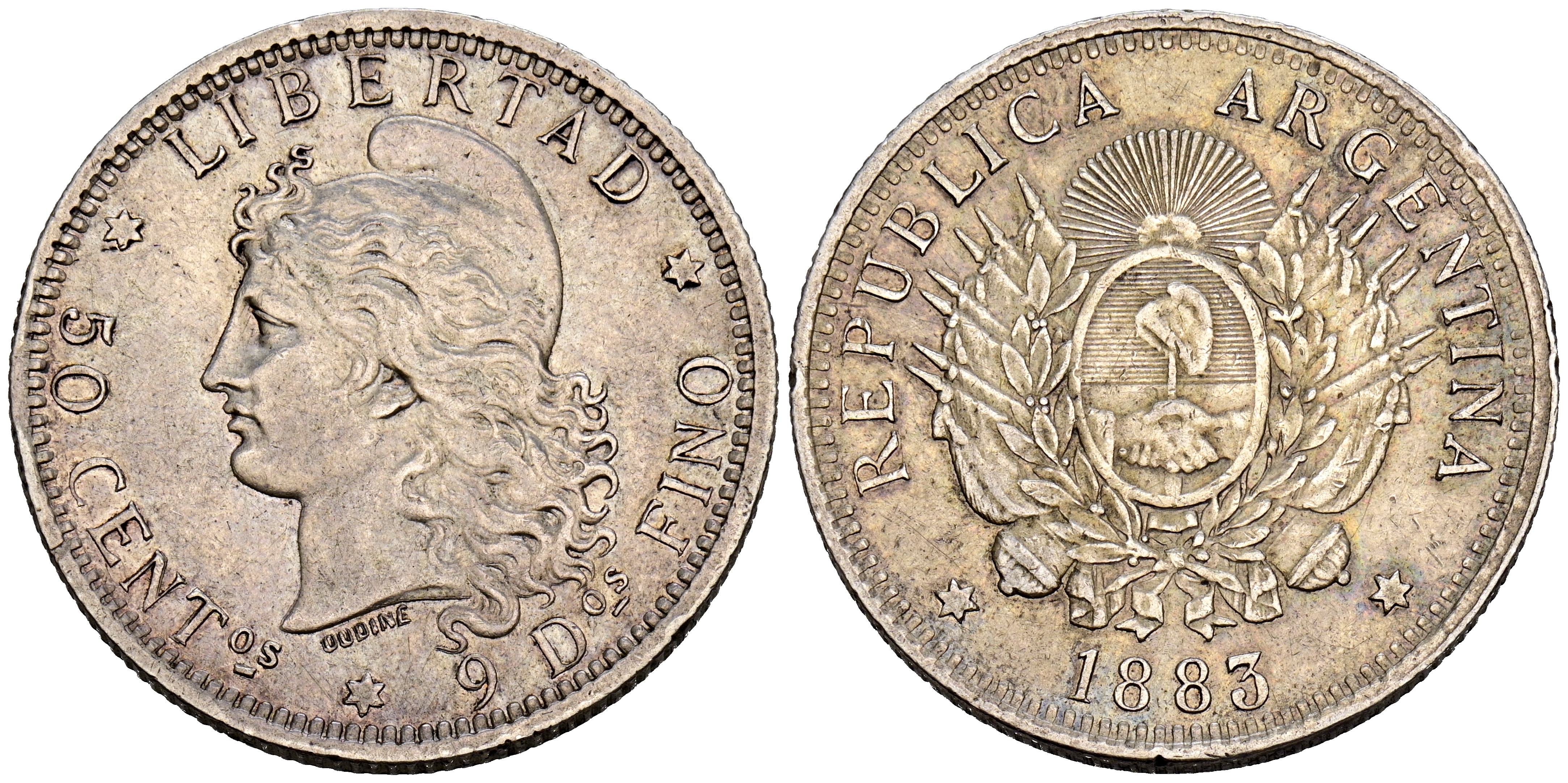ARGENTINA. 50 Centavos. (Ar. 12,39g/30mm). 1883. (Km#28). MBC+.