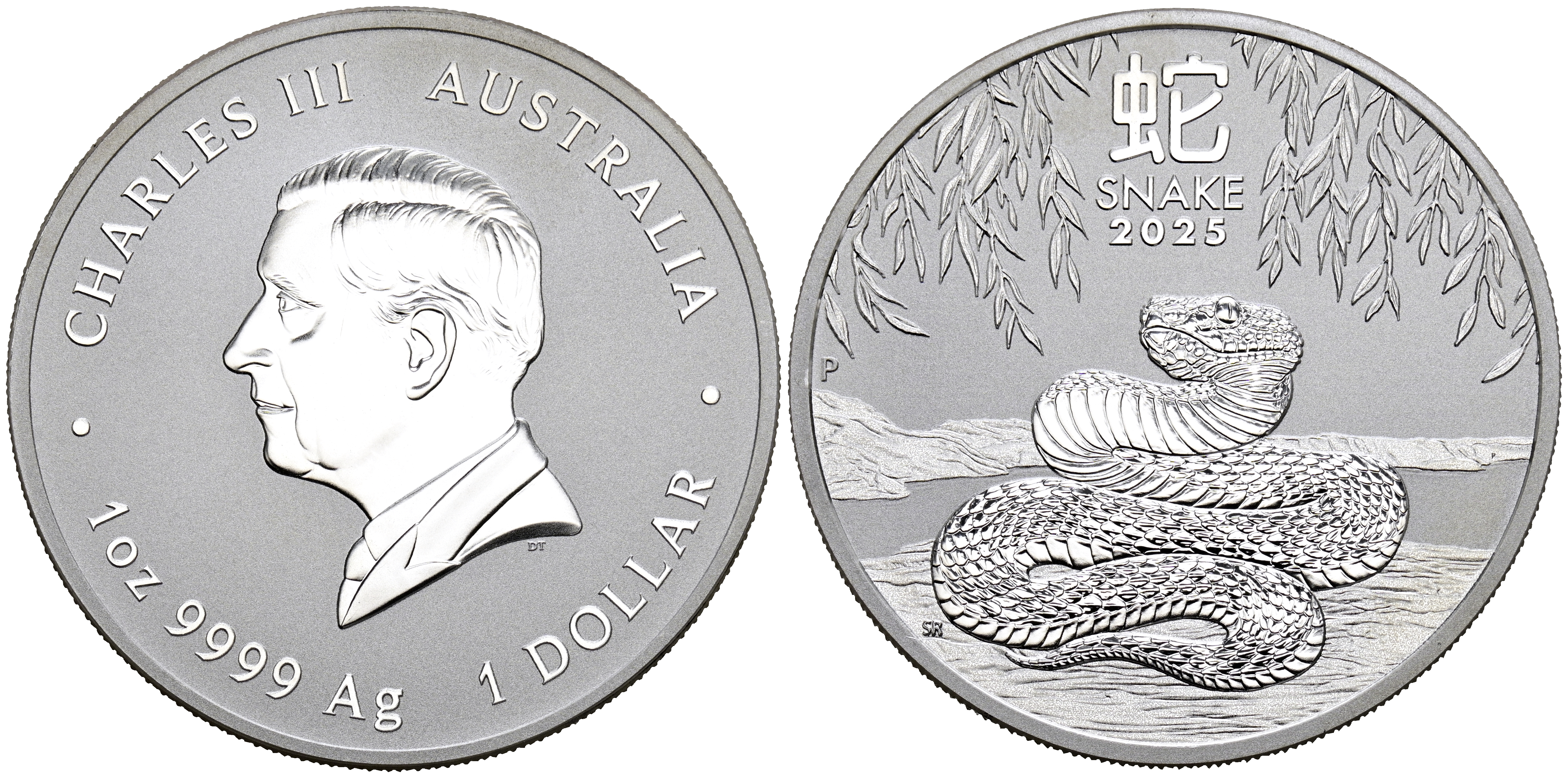 AUSTRALIA. 1 Dollar. (Ar. 31,41g/41mm). 2025. Perth. Zodiaco chino: año de la serpiente. Plata de 0,999 milésimas. SC.