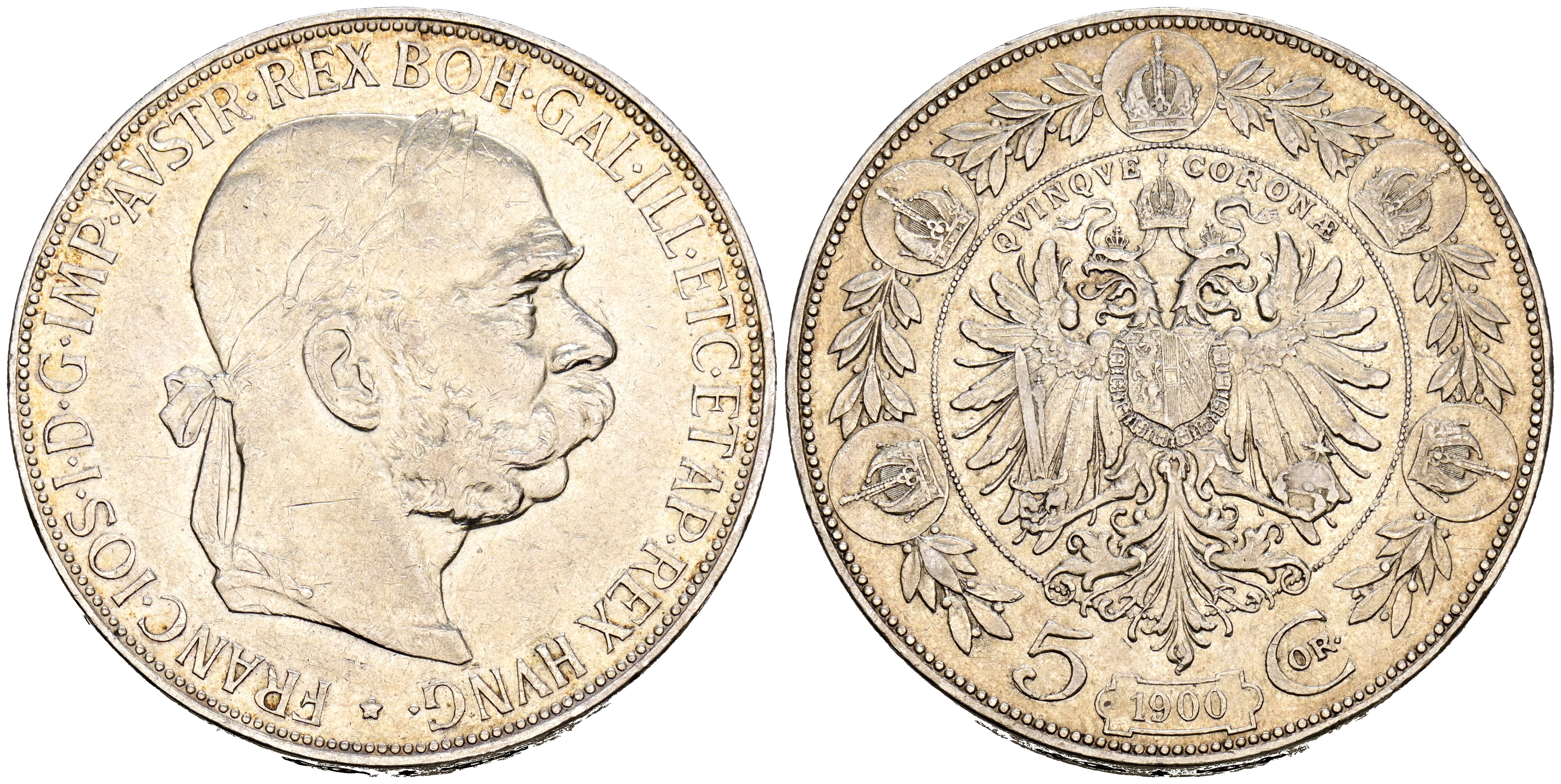 AUSTRIA, Francisco José I. 5 Coronas. (Ar. 23,91g/36mm). 1900. (Km#2807). MBC/MBC+. Marquitas especialmente en anverso.
