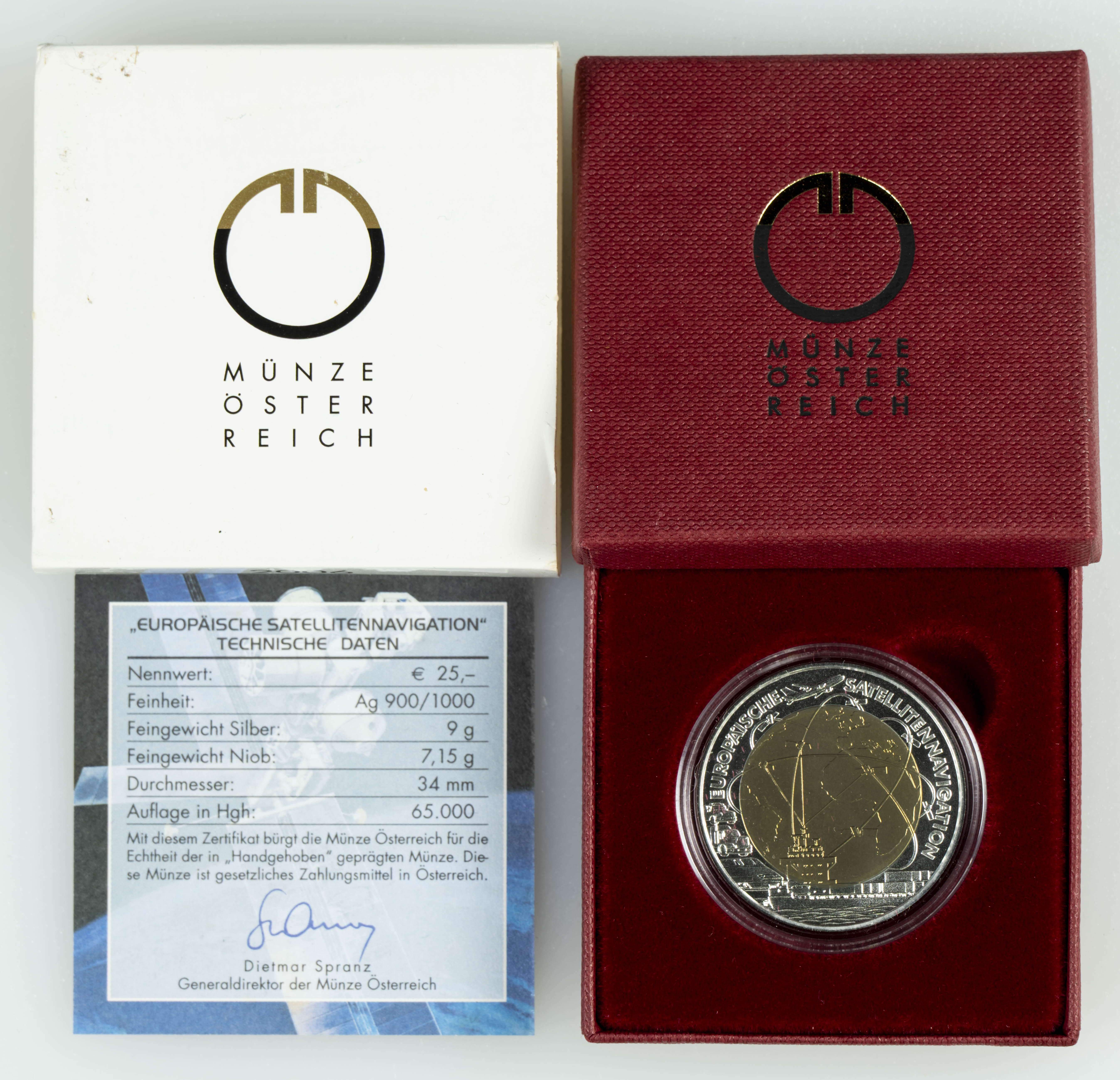 AUSTRIA. 25 Euros. (Niobio-Ar. 16,88/34mm). 2006. Satélite europeo de navegación. (Km#3135). SC. Incluye estuche y certificado de autenticidad.
