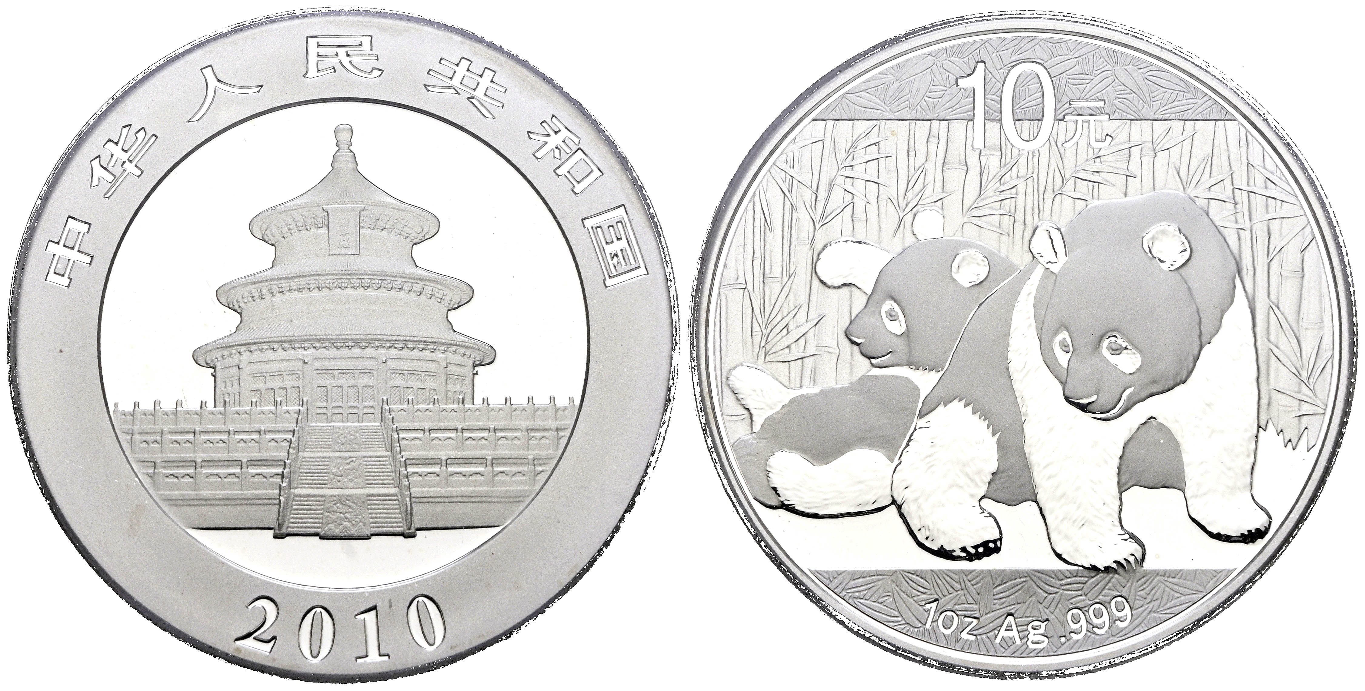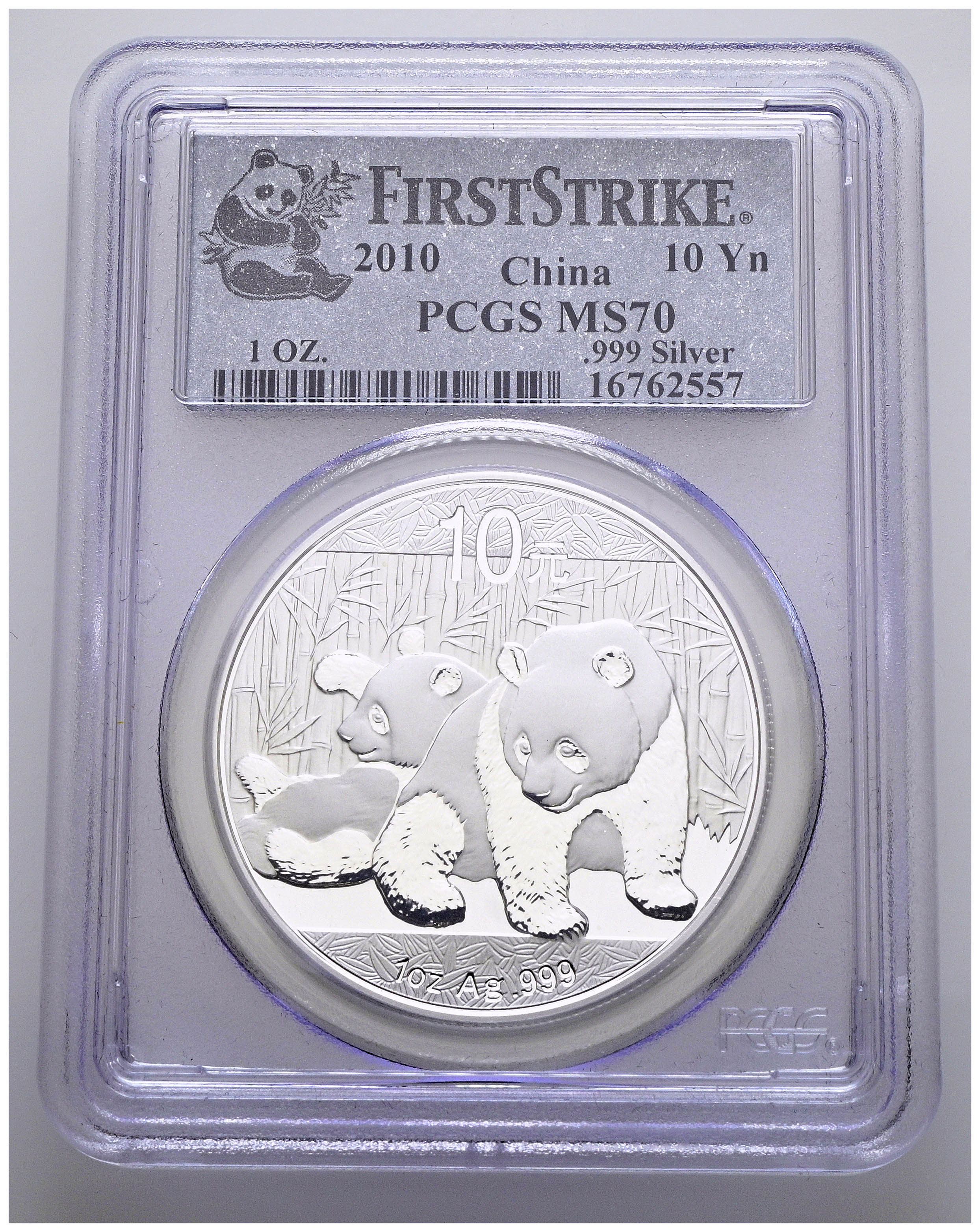 CHINA. 10 Yuan. (Ar. 30,00g/40mm)*. 2010. Serie Panda. First Strike. Encapsulado por PCGS MS 70. *Peso y medidas teóricos.