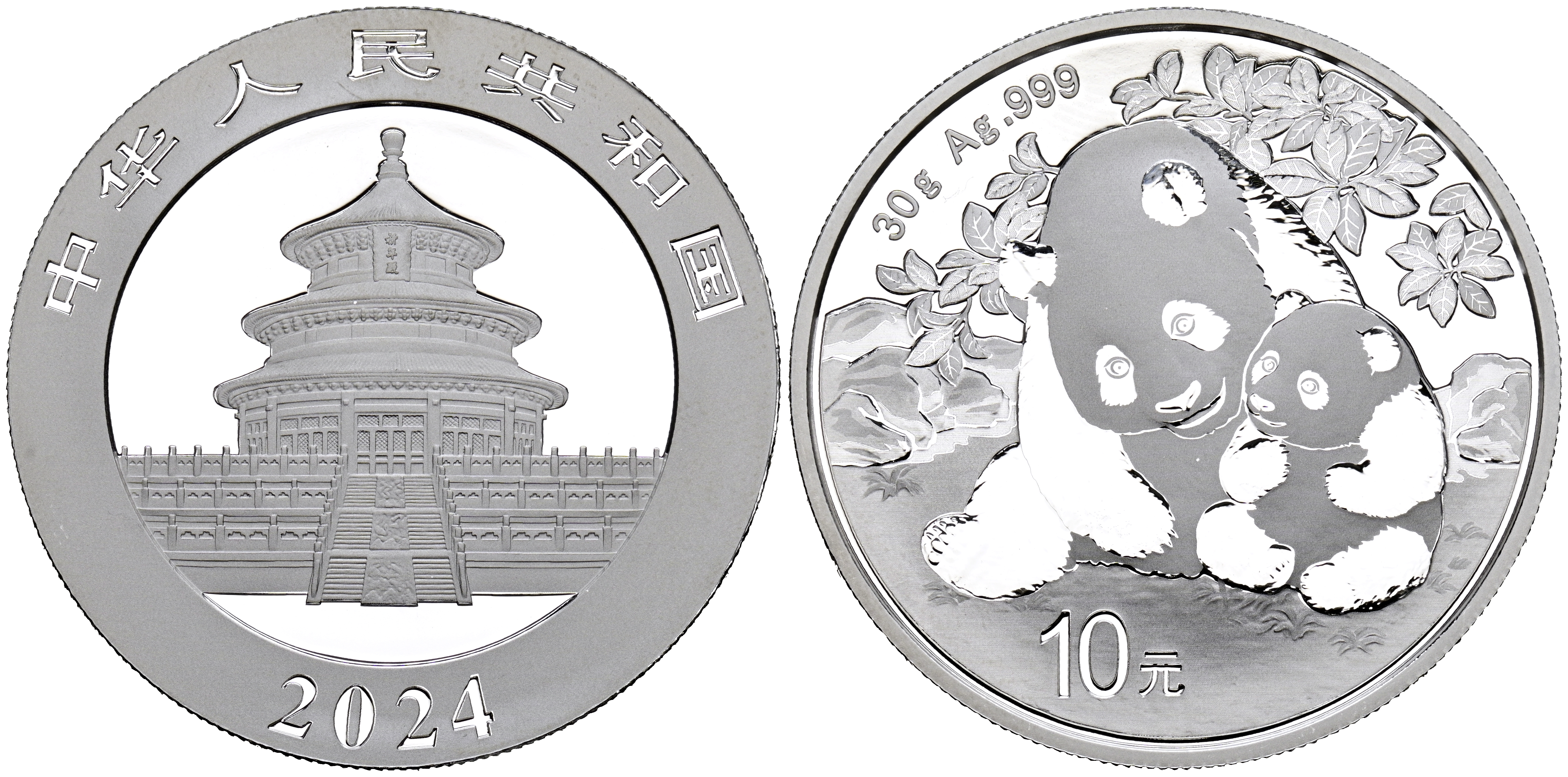 CHINA. 10 Yuan. (Ar. 29,90g/40mm). 2024. Serie Panda. SC.