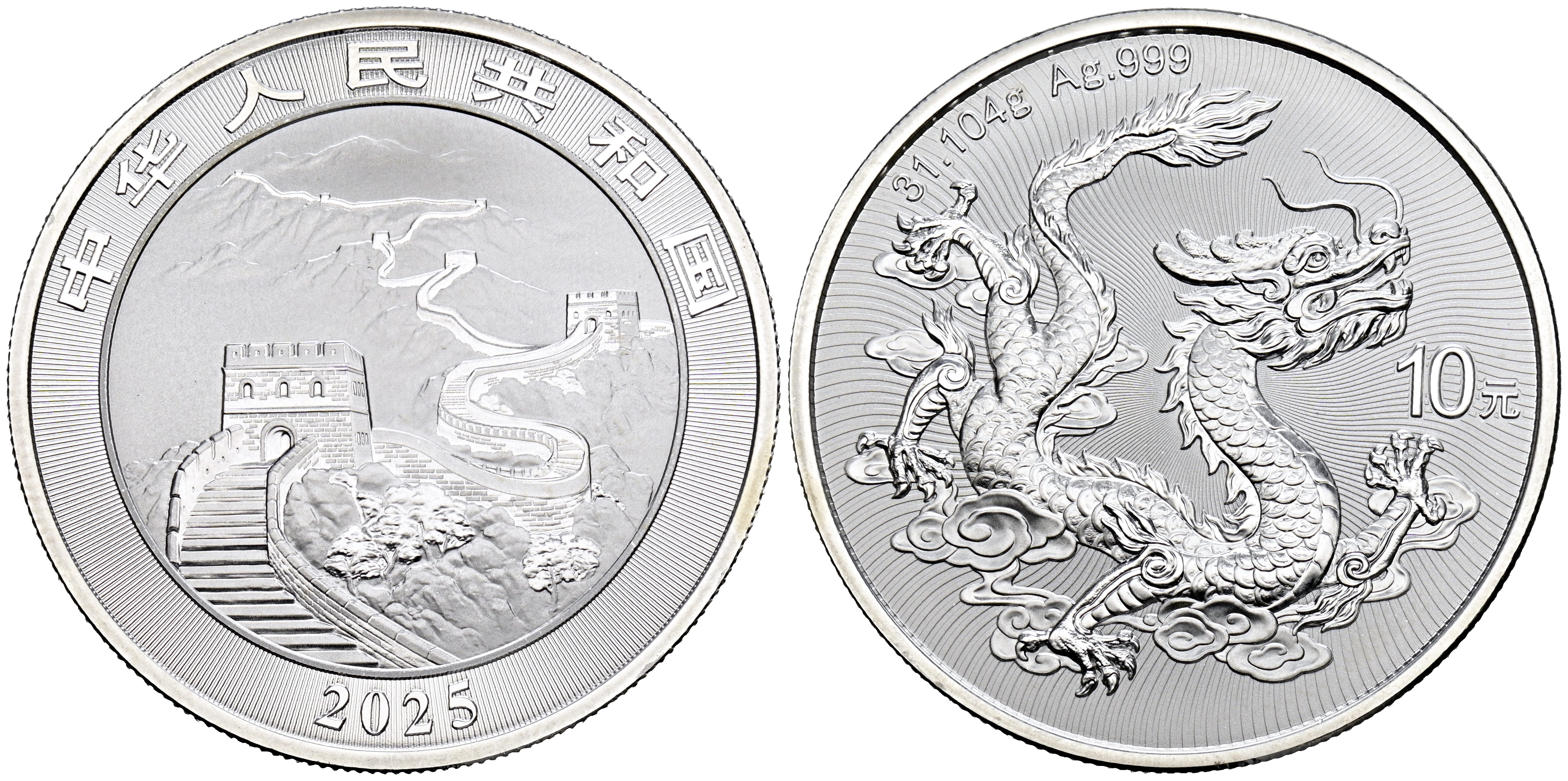 CHINA. 10 Yuan. (Ar. 31,33g/38mm). 2025. Dragón de China. Plata de 0,999 milésimas. SC.
