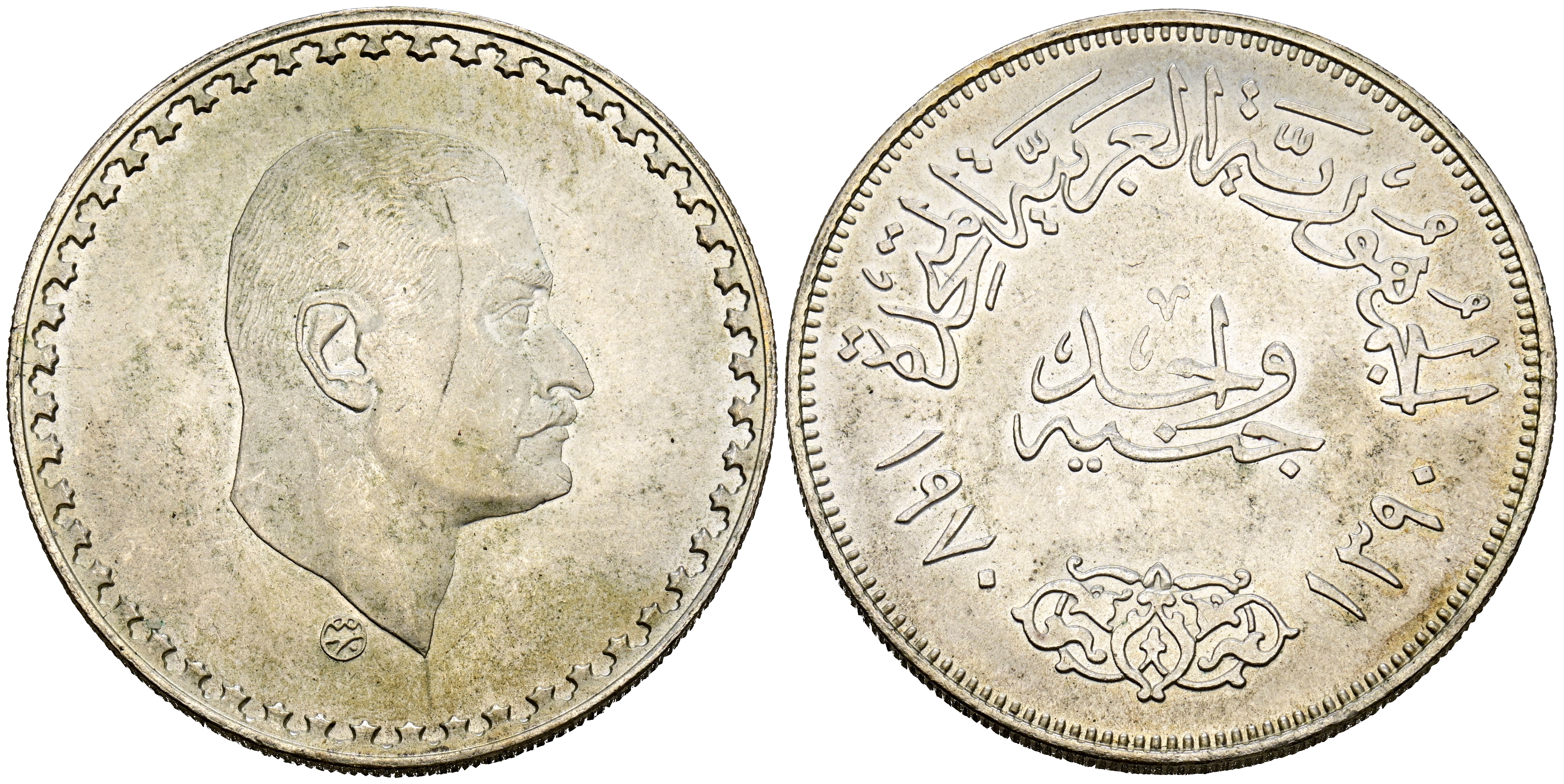 EGIPTO. 1 Libra. (Ar. 25,00g/40mm). 1970. Último año de presidencia de Gamal Abdel Nasser. (Km#425). EBC+.