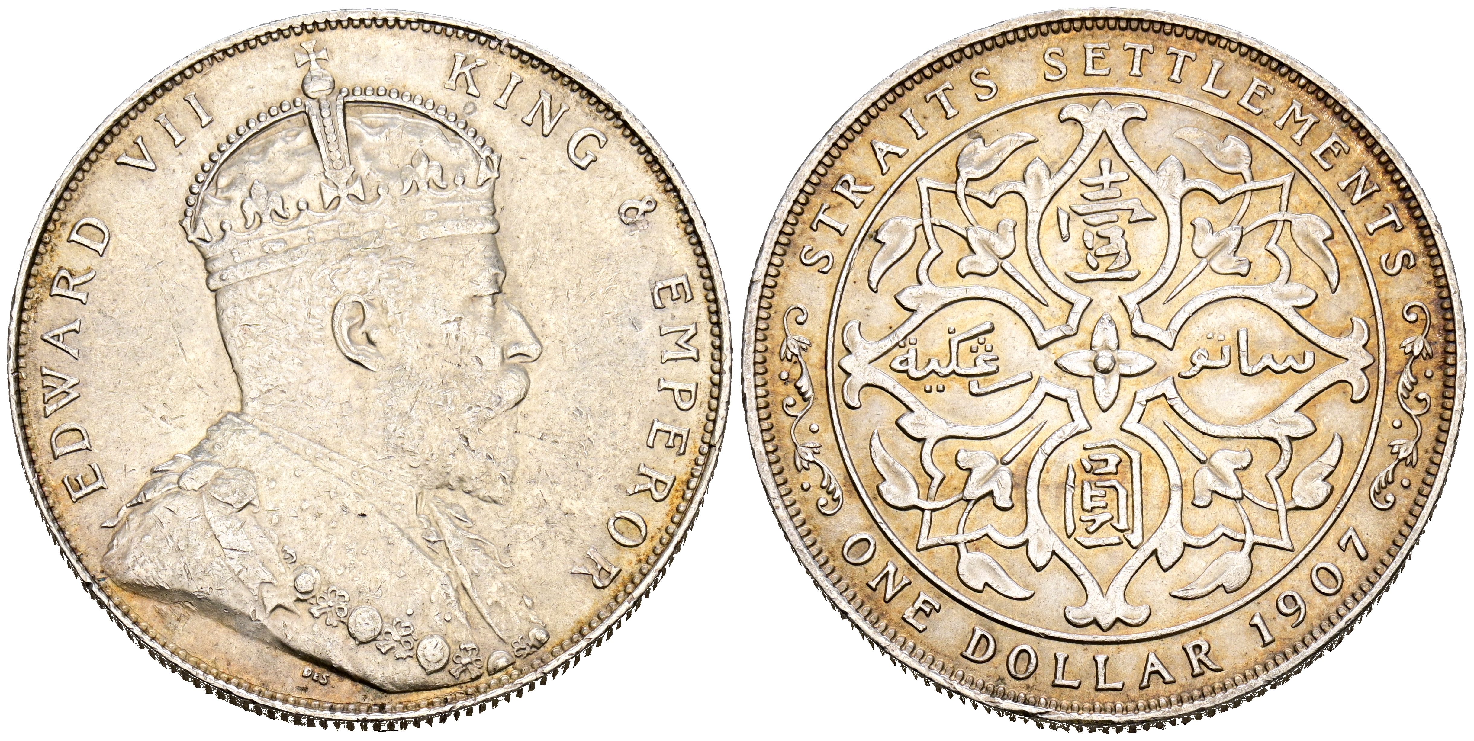 ESTABLECIMIENTOS DEL ESTRECHO, Eduardo VII. 1 Dollar (Ar. 20,18g/34mm). 1907. (Km#25). MBC+/EBC-.