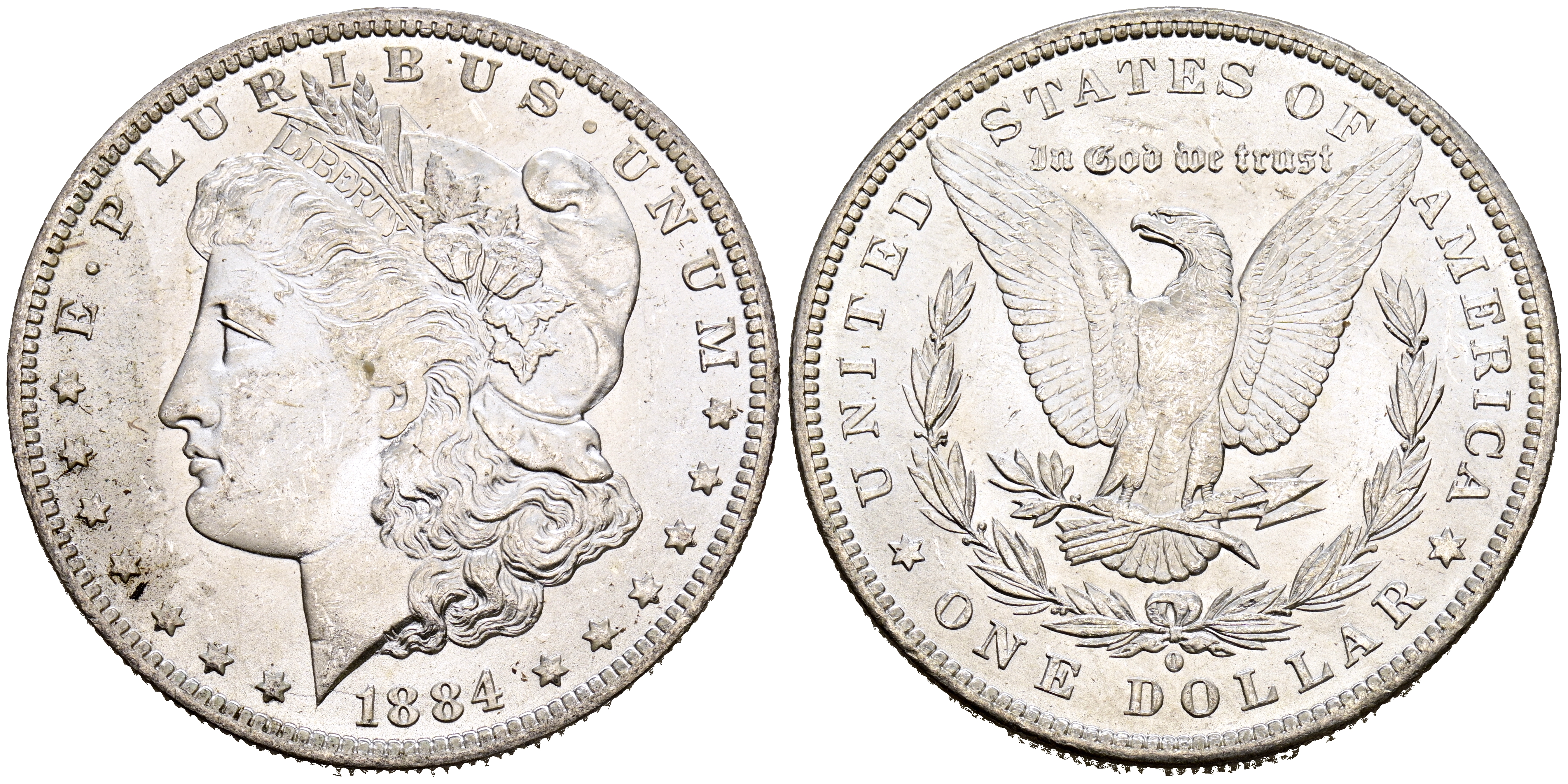 ESTADOS UNIDOS. 1 Dollar. (Ar. 26,74g/38mm). 1884. Nueva Orleans O. (Km#110). SC-.