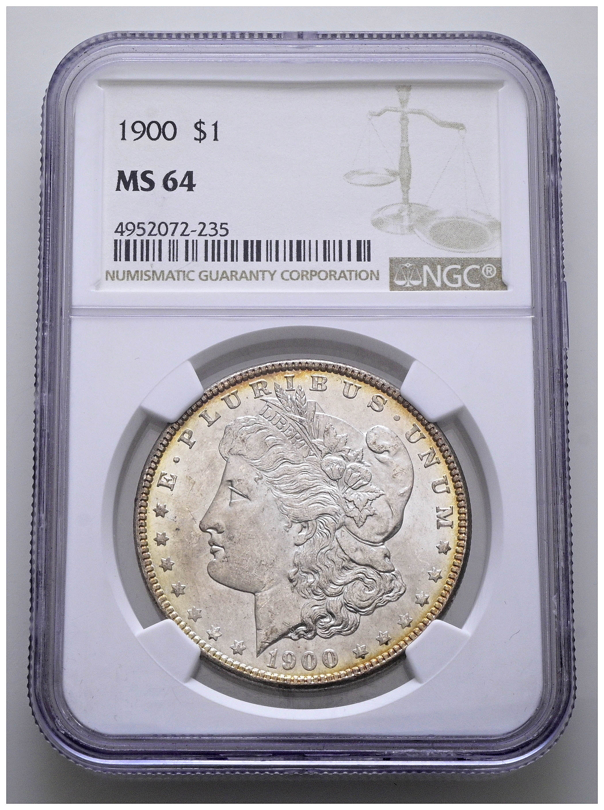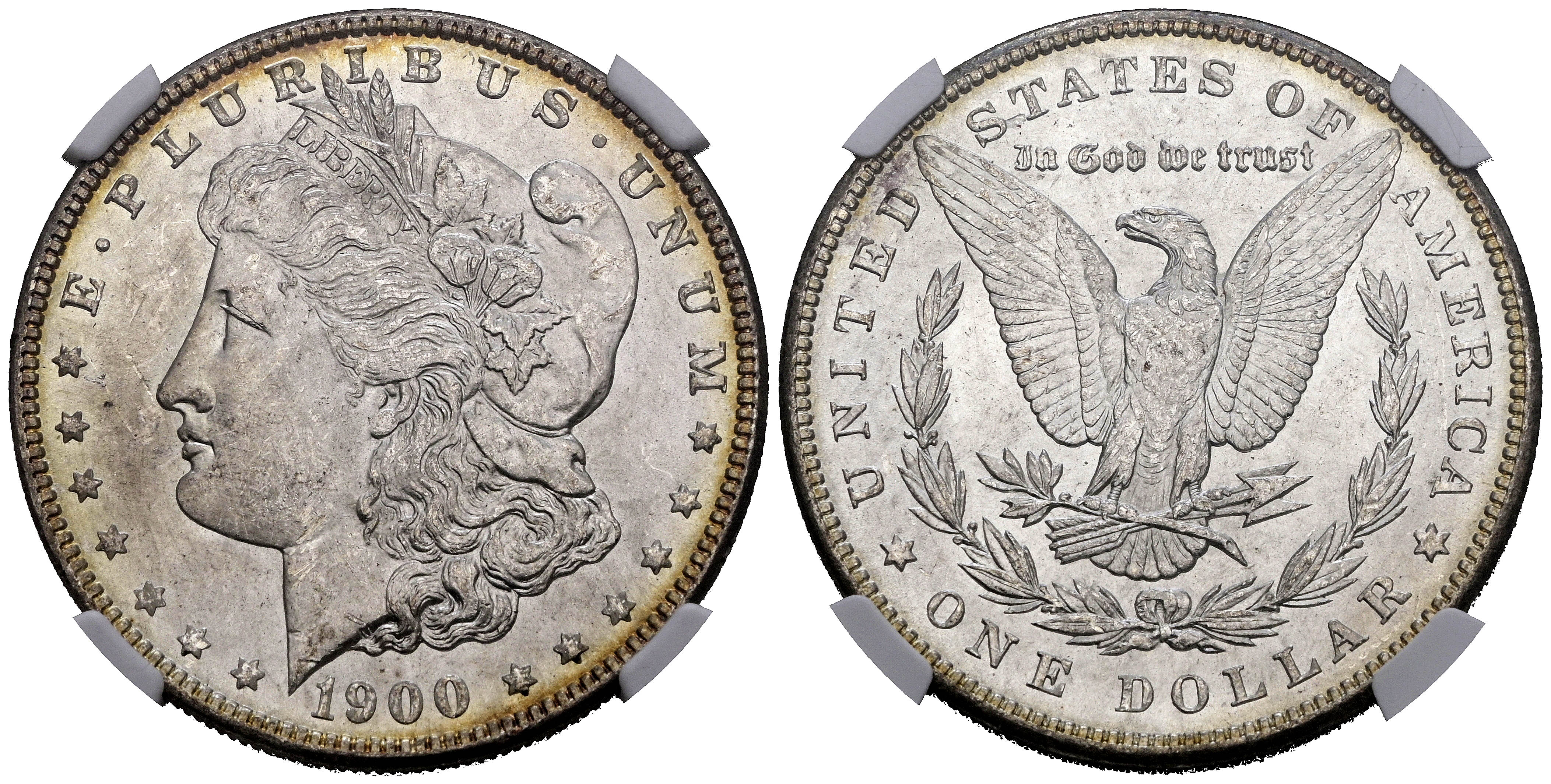 ESTADOS UNIDOS. 1 Dollar. (Ar. 27,00g/38mm)*. 1900. Philadelphia. (Km#110). Encapsulado por NGC MS 64. *Peso y medidas teóricos.