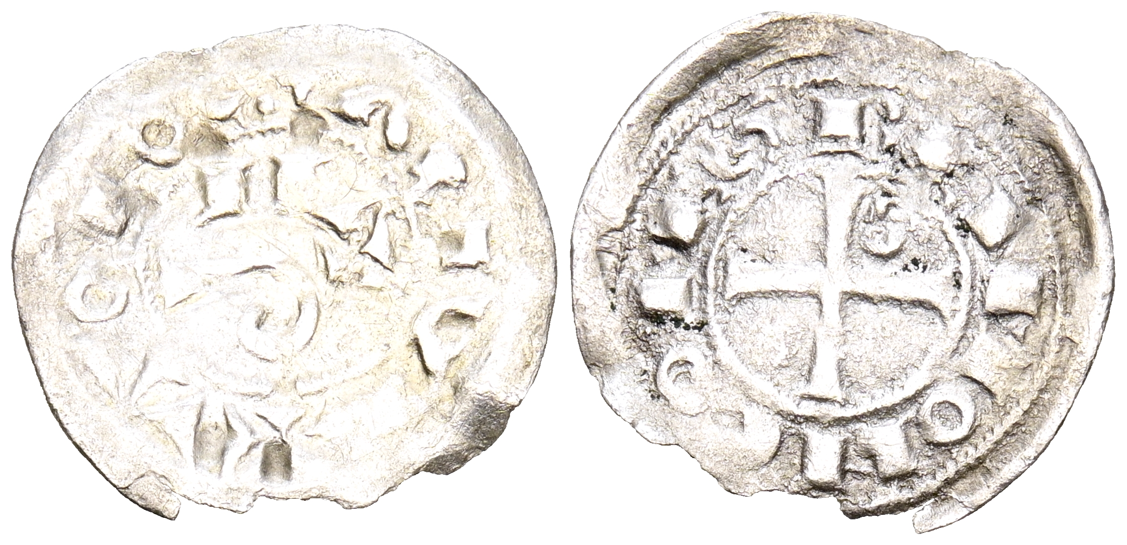 FRANCIA, Ramón V-VII (1148-1249). Obolo. (Ar. 0,39g/15mm). Condado de Toulouse. (Boud 722). Anv: Cruz con S en 2º cuadrante, alrededor leyenda: RAMON COMES. Rev: PAX, alrededor leyenda: TOLOSA CIVI. MBC+. Buen ejemplar.