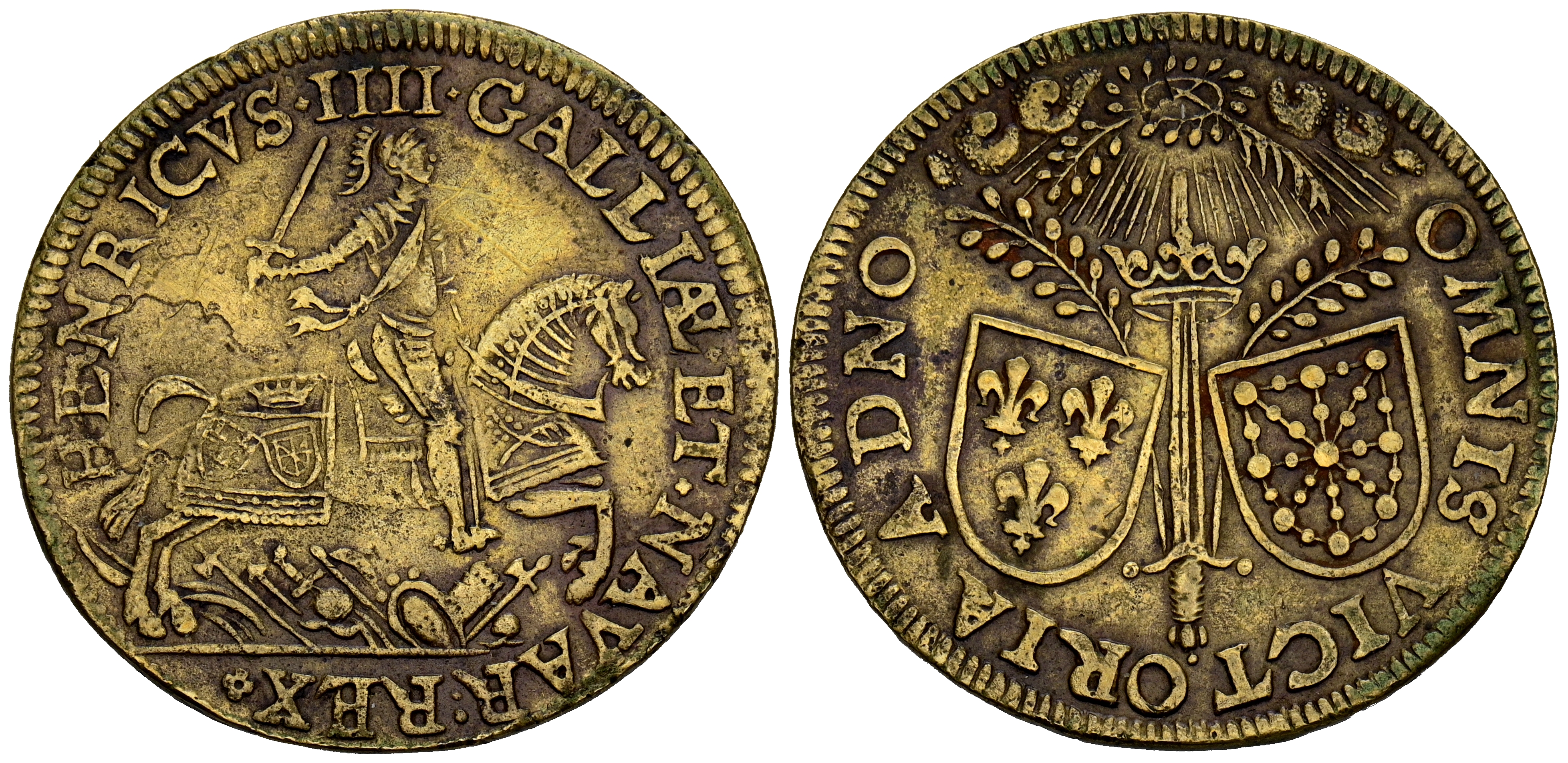FRANCIA, Enrique IV (como rey de Navarra). Jetón. (LA. 4,07g/27mm). S/D (finales del S. XVI). Nuremberg. (F. 11960). MBC. Bonito ejemplar.