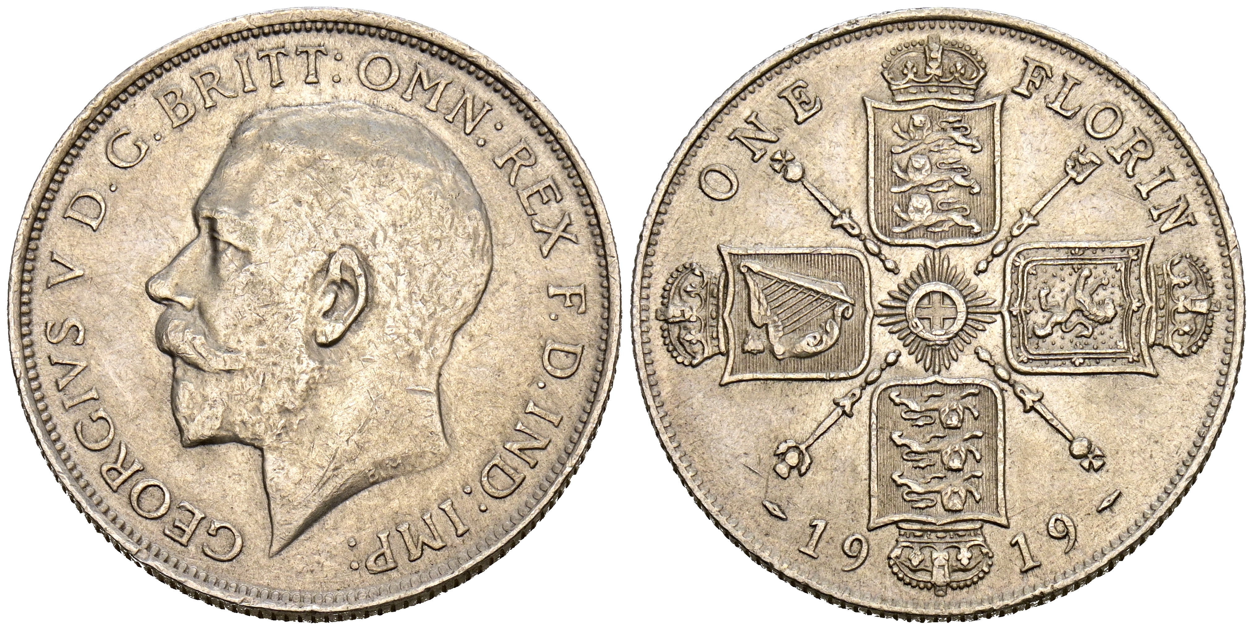 GRAN BRETAÑA, Jorge V. 1 Florín. (Ar. 11,31g/28mm). 1919. (Km#817). MBC+.