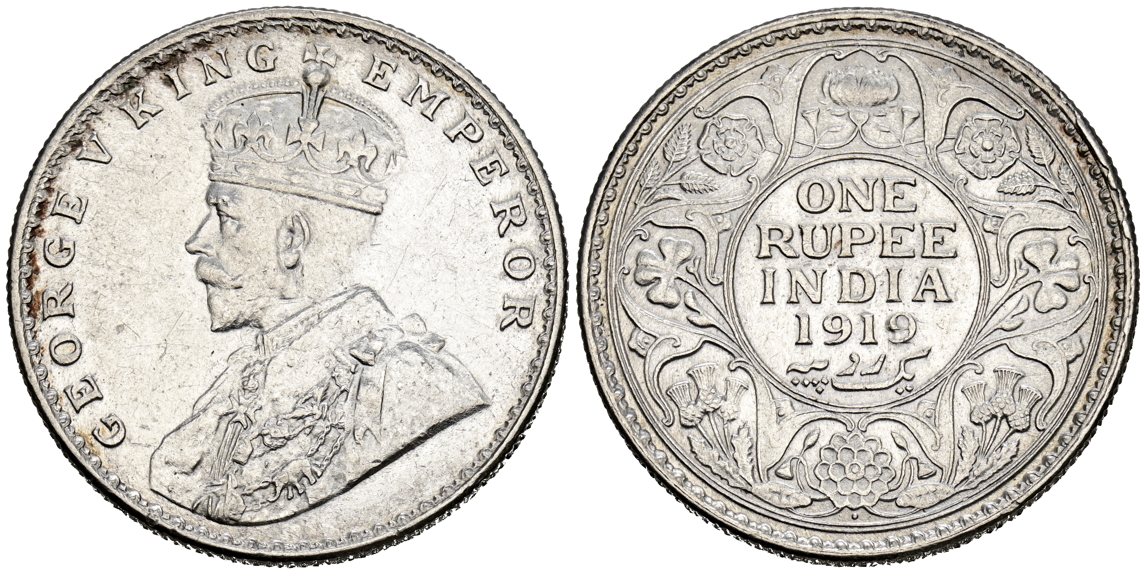 INDIA (Británica), Jorge V. 1 Rupia. (Ar. 11,66g/31mm). 1919. (Km#524). EBC-/EBC.