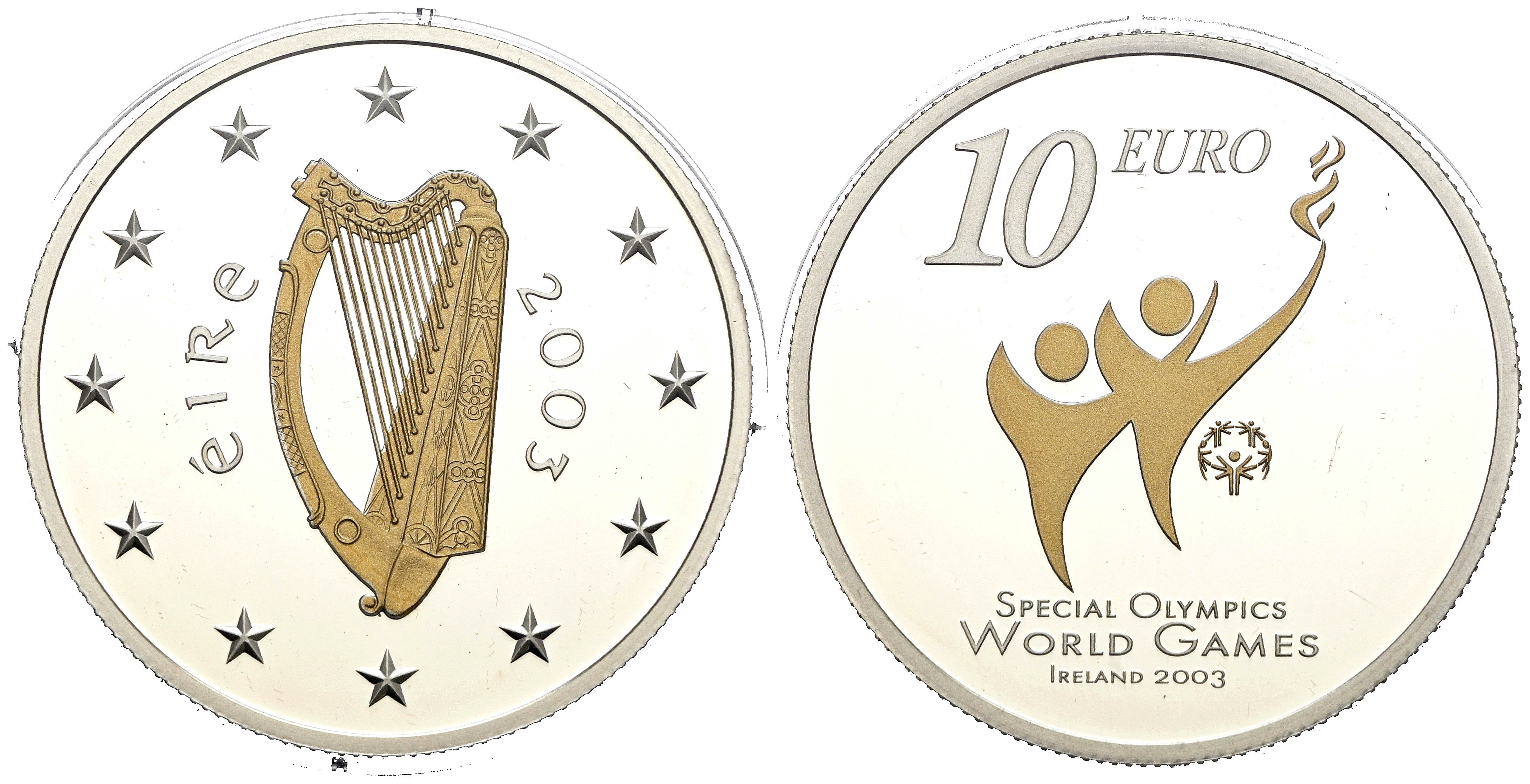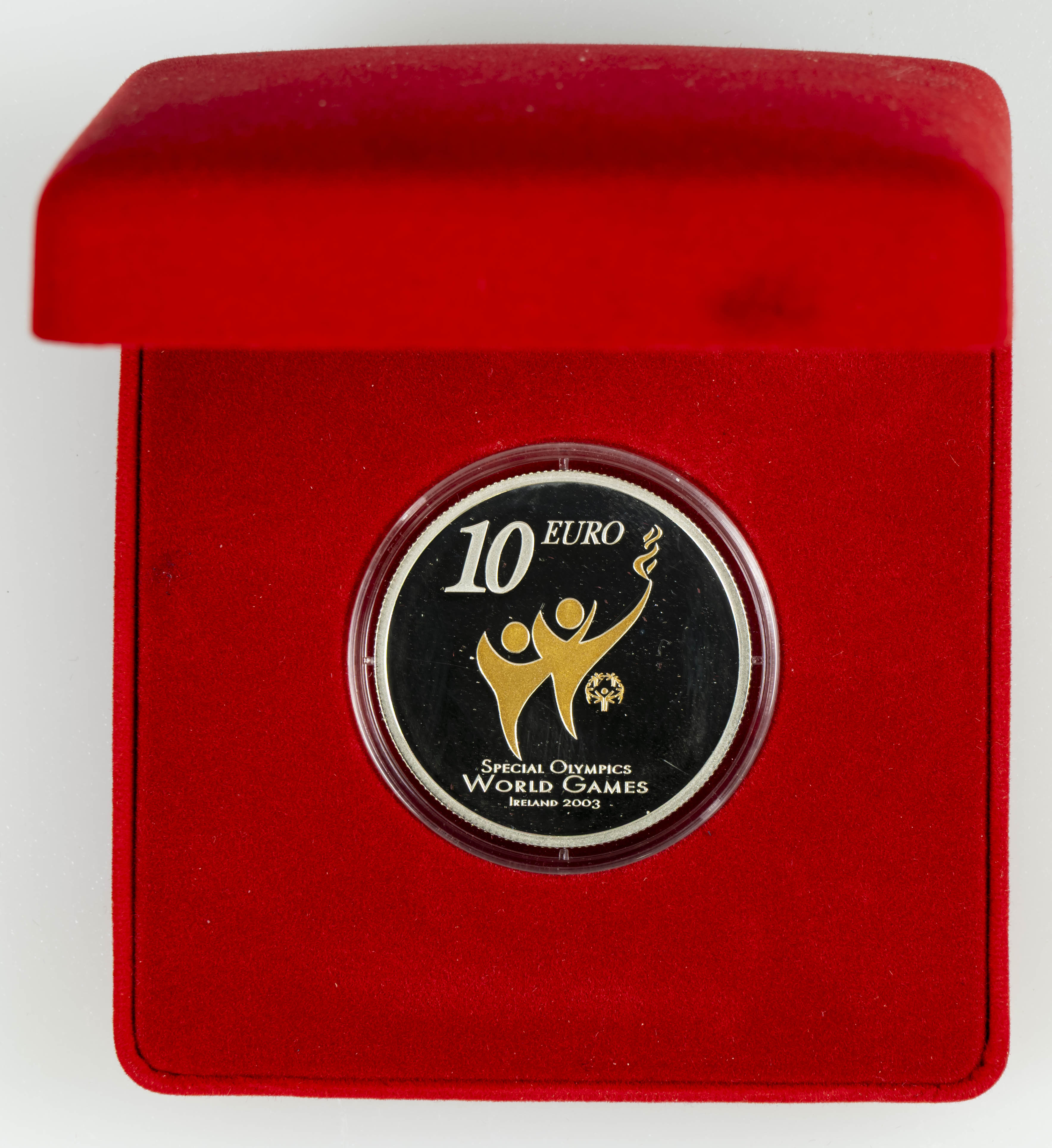 IRLANDA. 10 Euro (Ar. 28,28g/39mm). 2003. Special Olympic World Game. (Km#41). PROOF. Set completo incluyendo certificado de autenticidad.