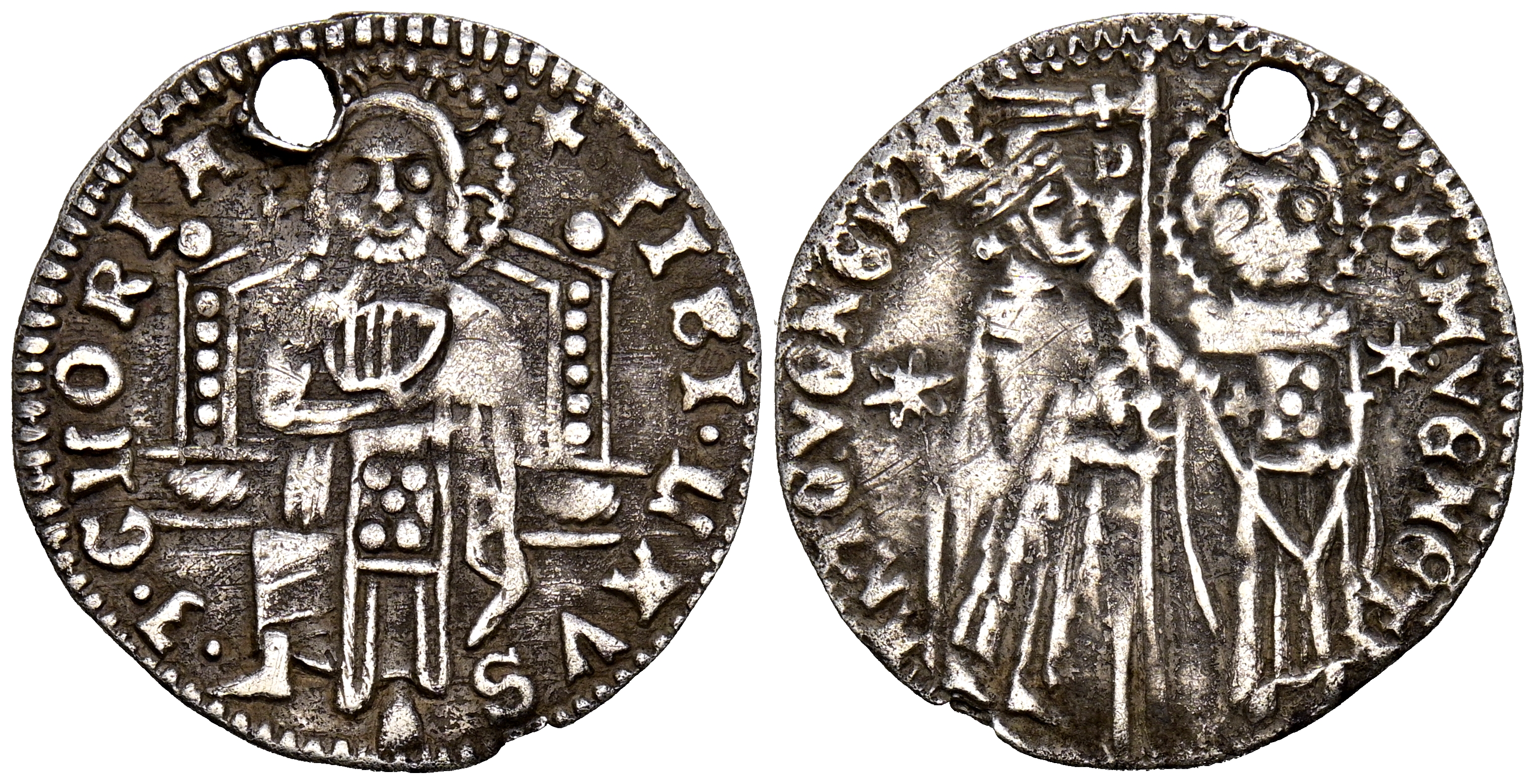 ITALIA, Antonio Venier (1382-1400). Grosso. (Ar. 1,56g/22mm). Venecia. (Paolucci 3). MBC-. Perforación.