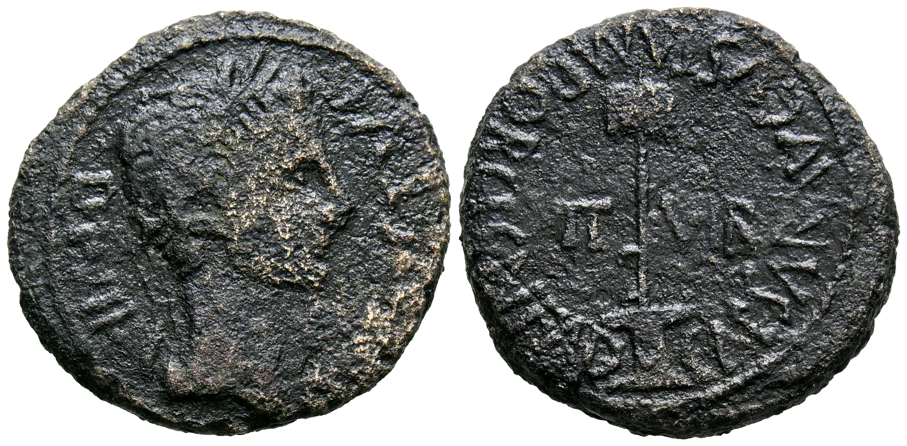 CAESARAUGUSTA (Zaragoza). Semis. (Ae. 4,73g/21mm). 27 a.C.-14 d.C. (FAB-334). Anv: Cabeza laureada de Augusto a derecha, alrededor leyenda AVGVSTVS DIVI F. Rev: Vexilo, a sus lados: II VIR, alrededor leyenda: CAESAR AVGVSTA M PORCI CN FAD. BC+.