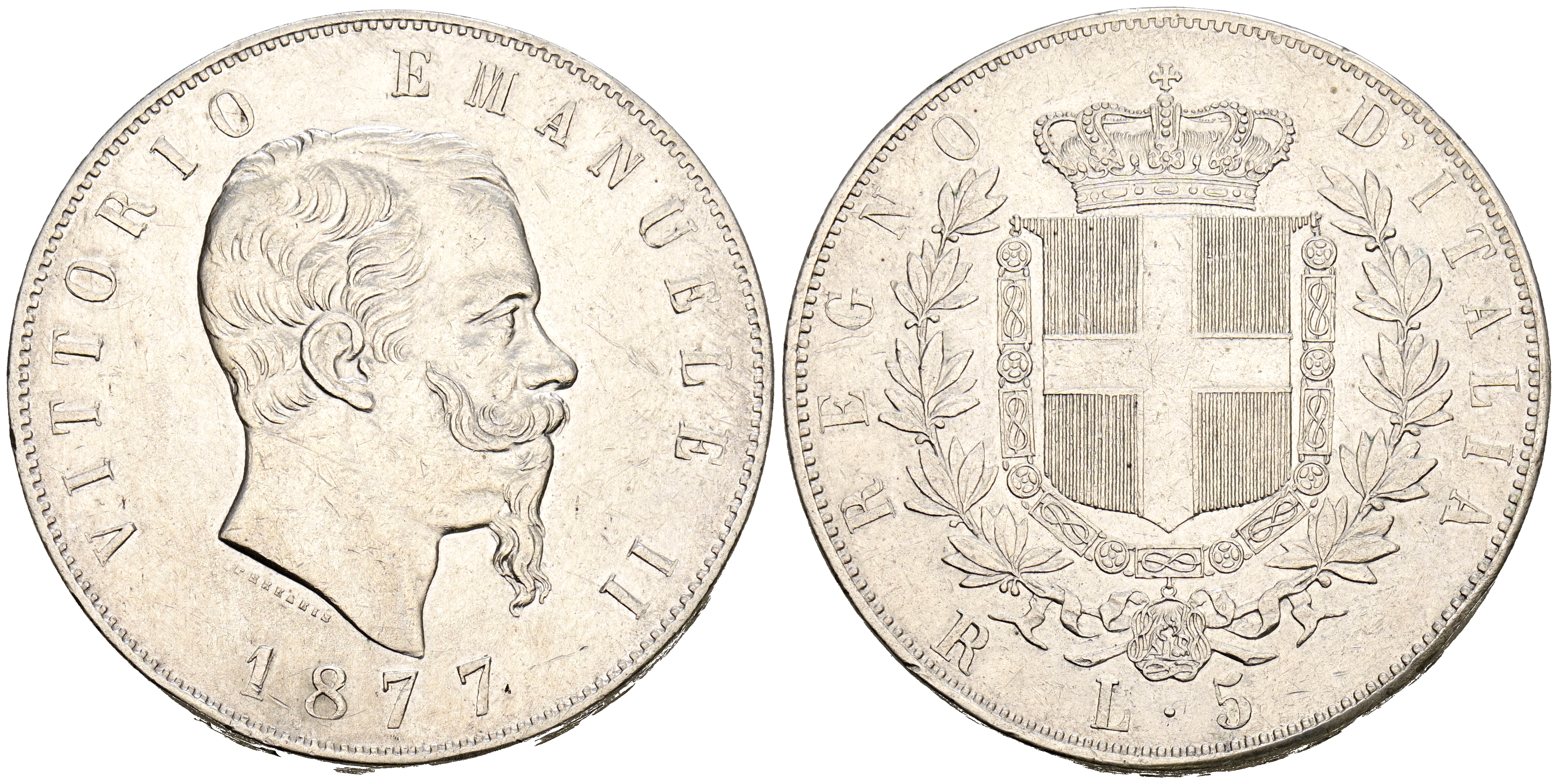 ITALIA, Victor Manuel II. 5 Liras. (Ar. 24,86g/37mm). 1877. Roma. (Km#8.4). EBC-. Marquitas.