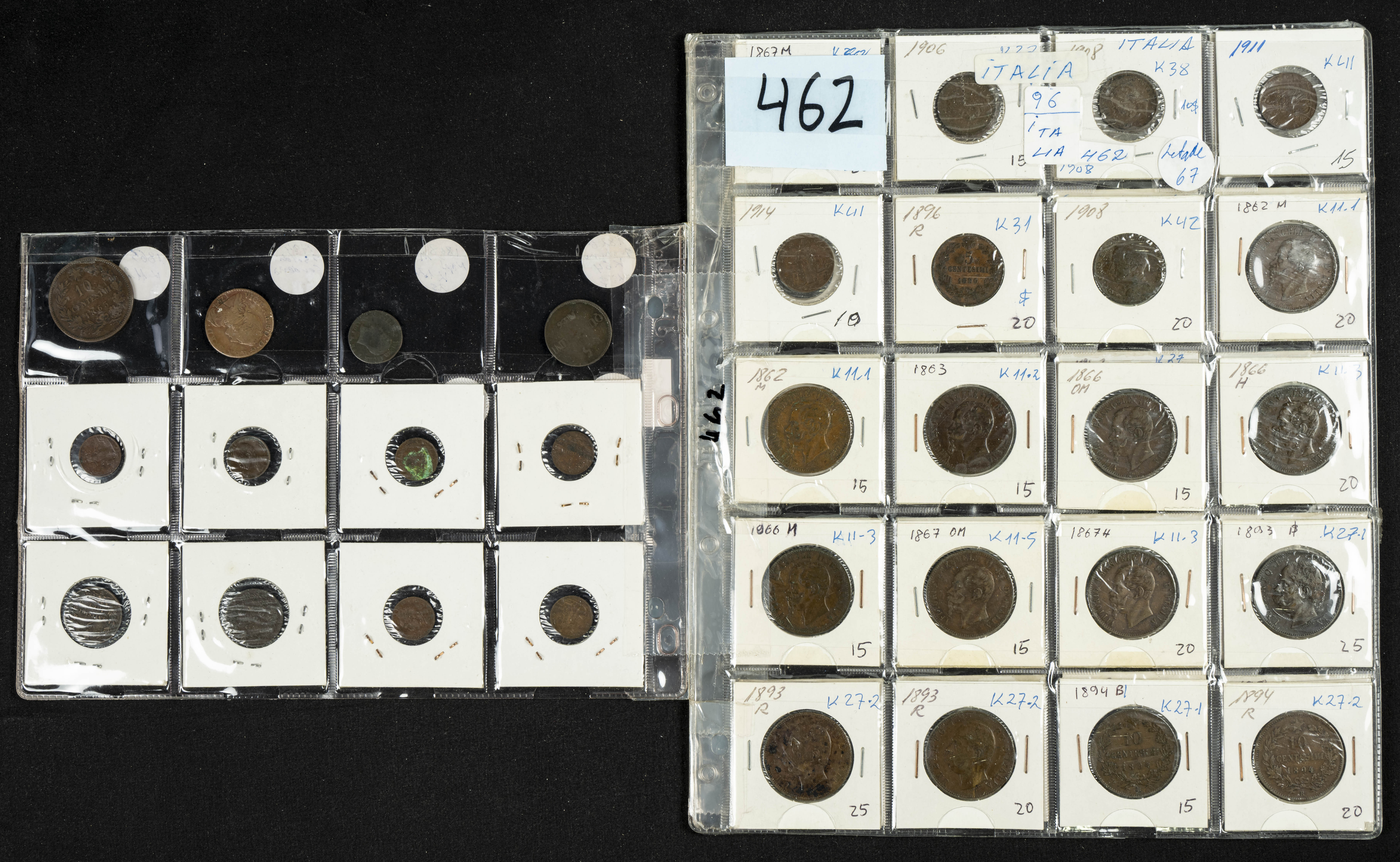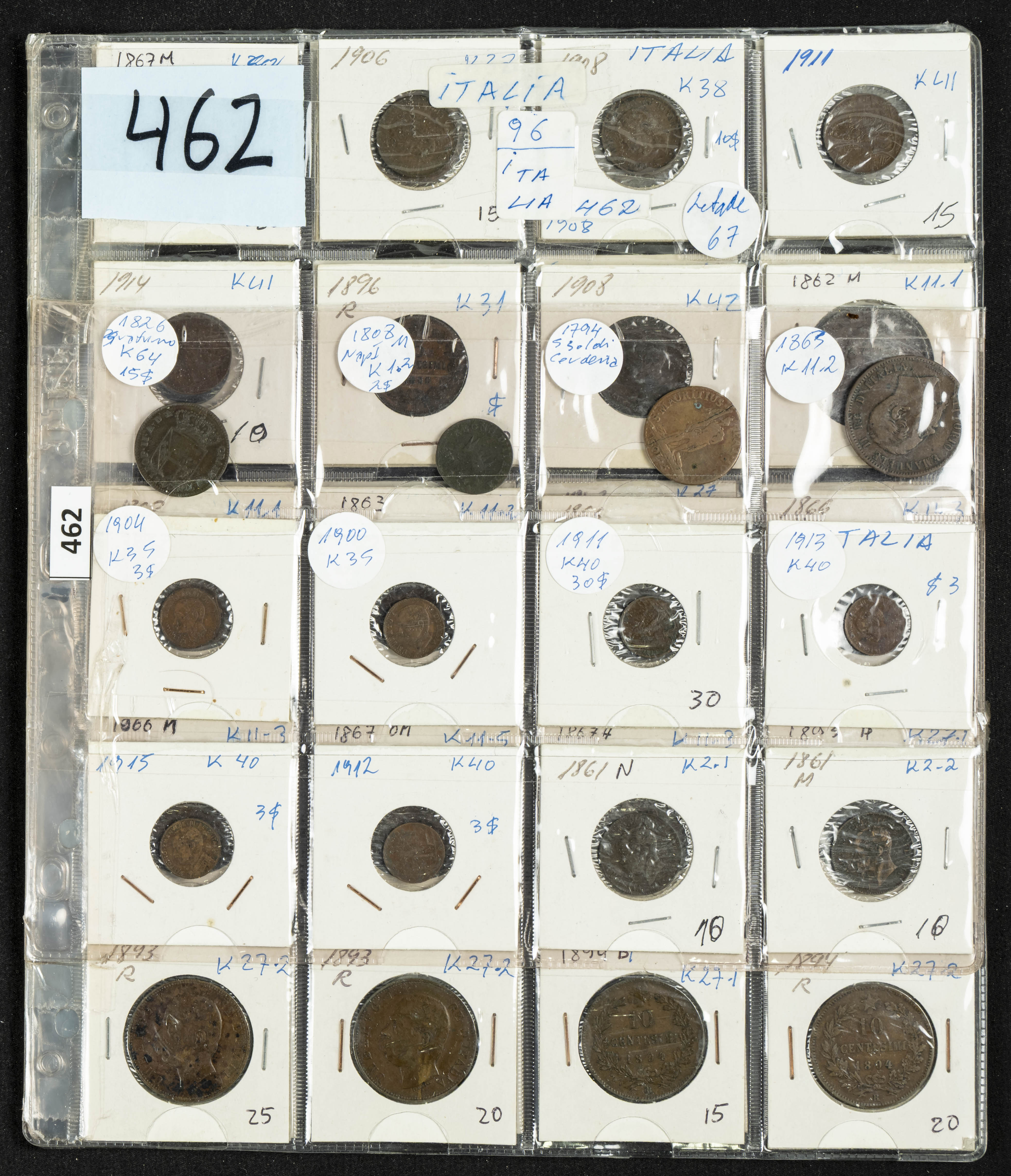 ITALIA. Conjunto de 52 piezas con acuñaciones comprendidas entre finales del S. XVIII y mediados del XX. Variedad de módulos y fechas. Diferentes estados de conservación. A EXAMINAR.