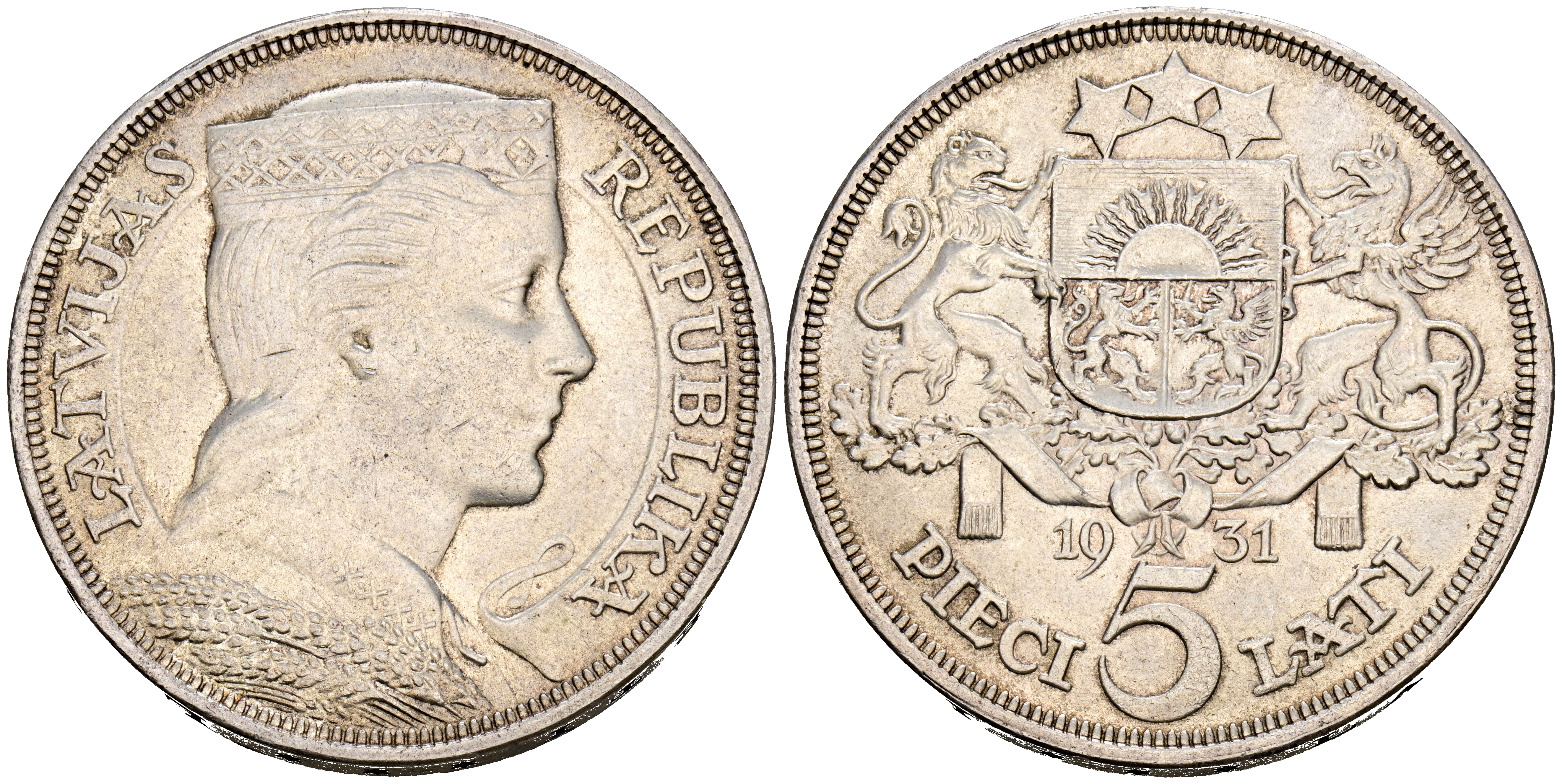 LETONIA, Primera República (1918-1940). 5 Lati. (Ar. 24,97g /37mm). 1931. (Km#9). EBC-.