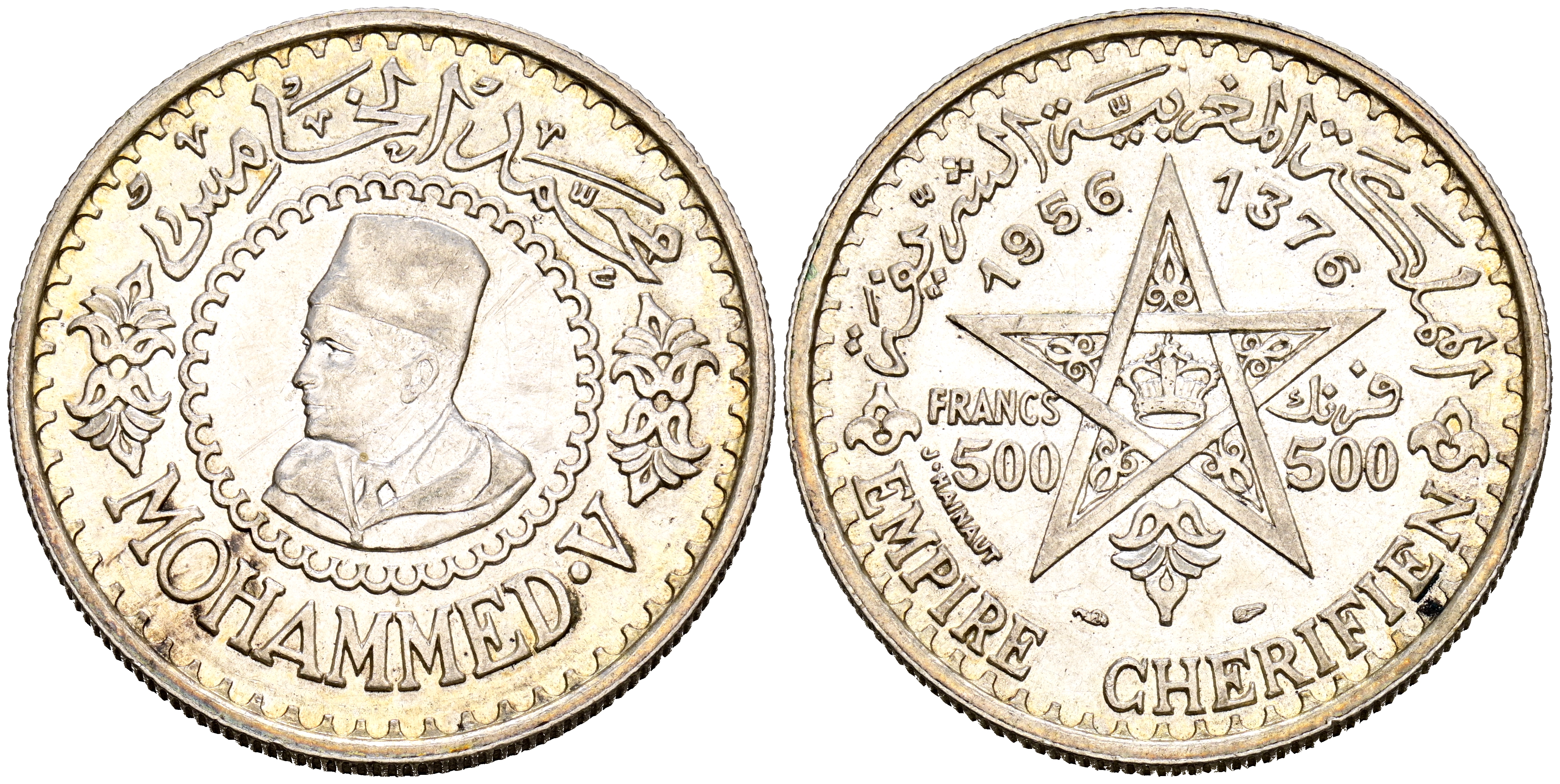 MARRUECOS, Mohammed V. 500 Francs. (Ar. 22.53g/36mm). 1956 (1376H). (Km#54). EBC.