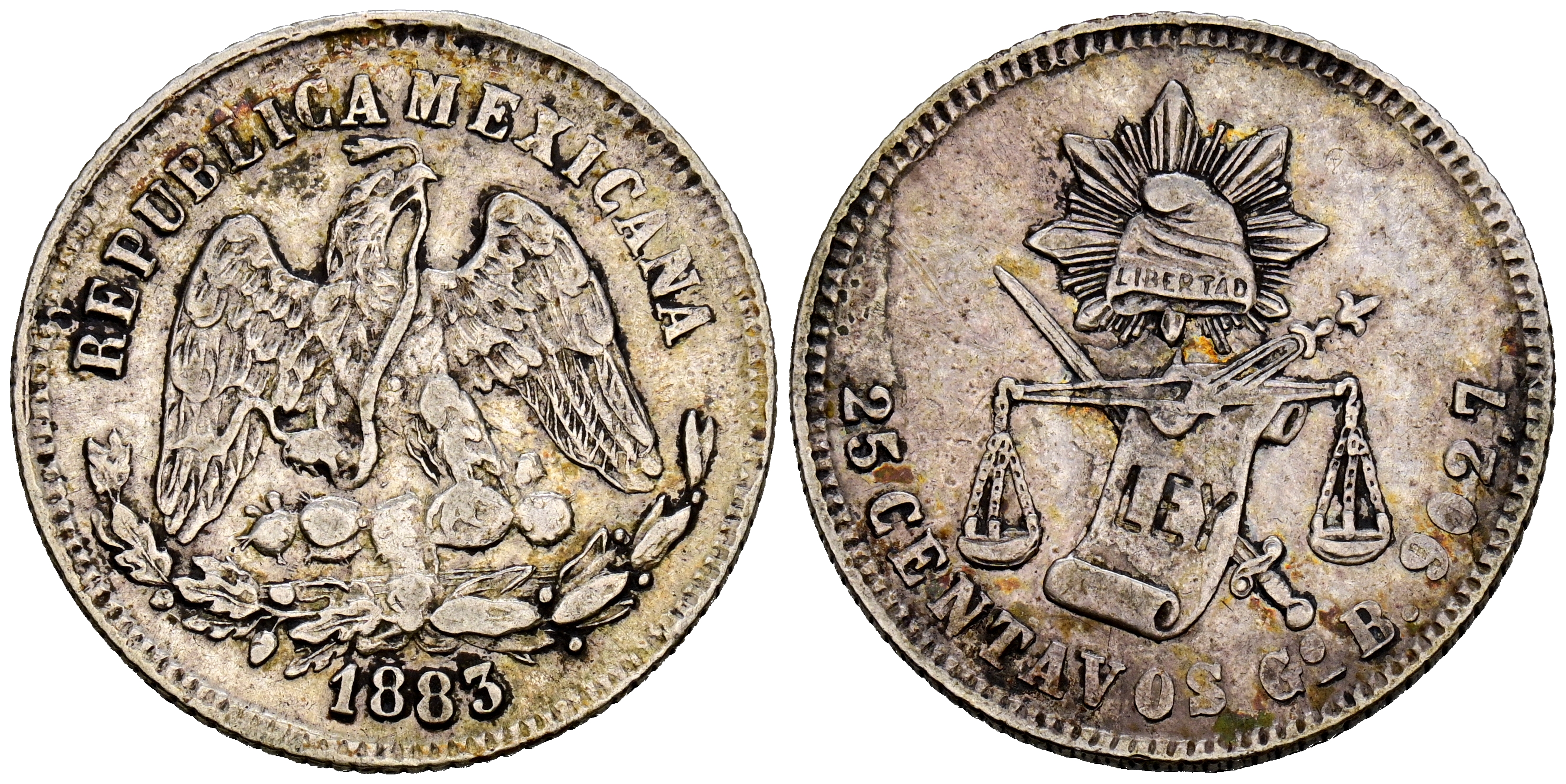MÉXICO. 25 Centavos (Ar. 6,77g/25mm). 1883. Guanajuato B. (Km#406.5). MBC.