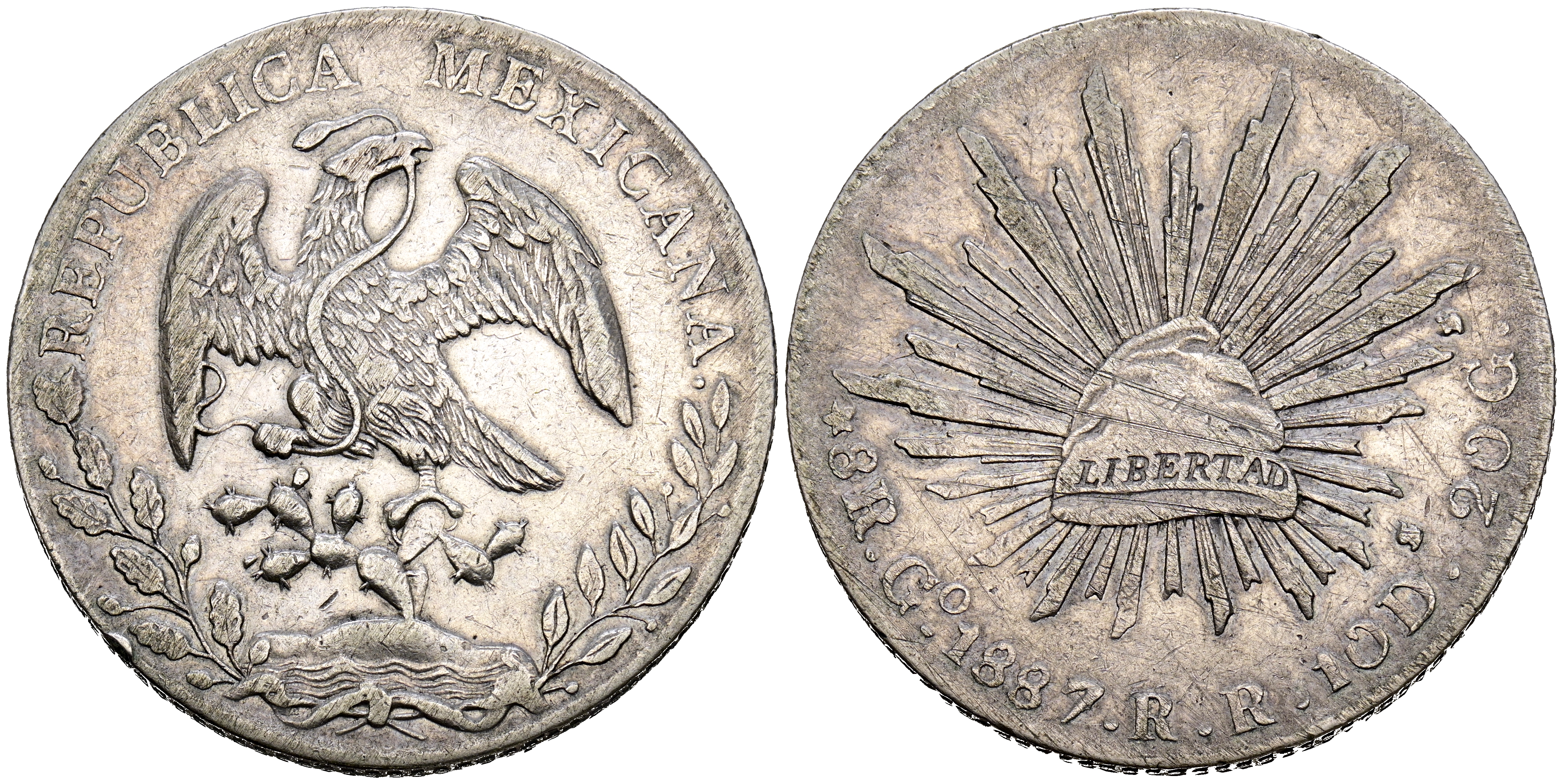 MÉXICO. 8 Reales (Ar. 26,87g/38mm). 1887. Guanajuato RR. (Km#377.8). MBC.