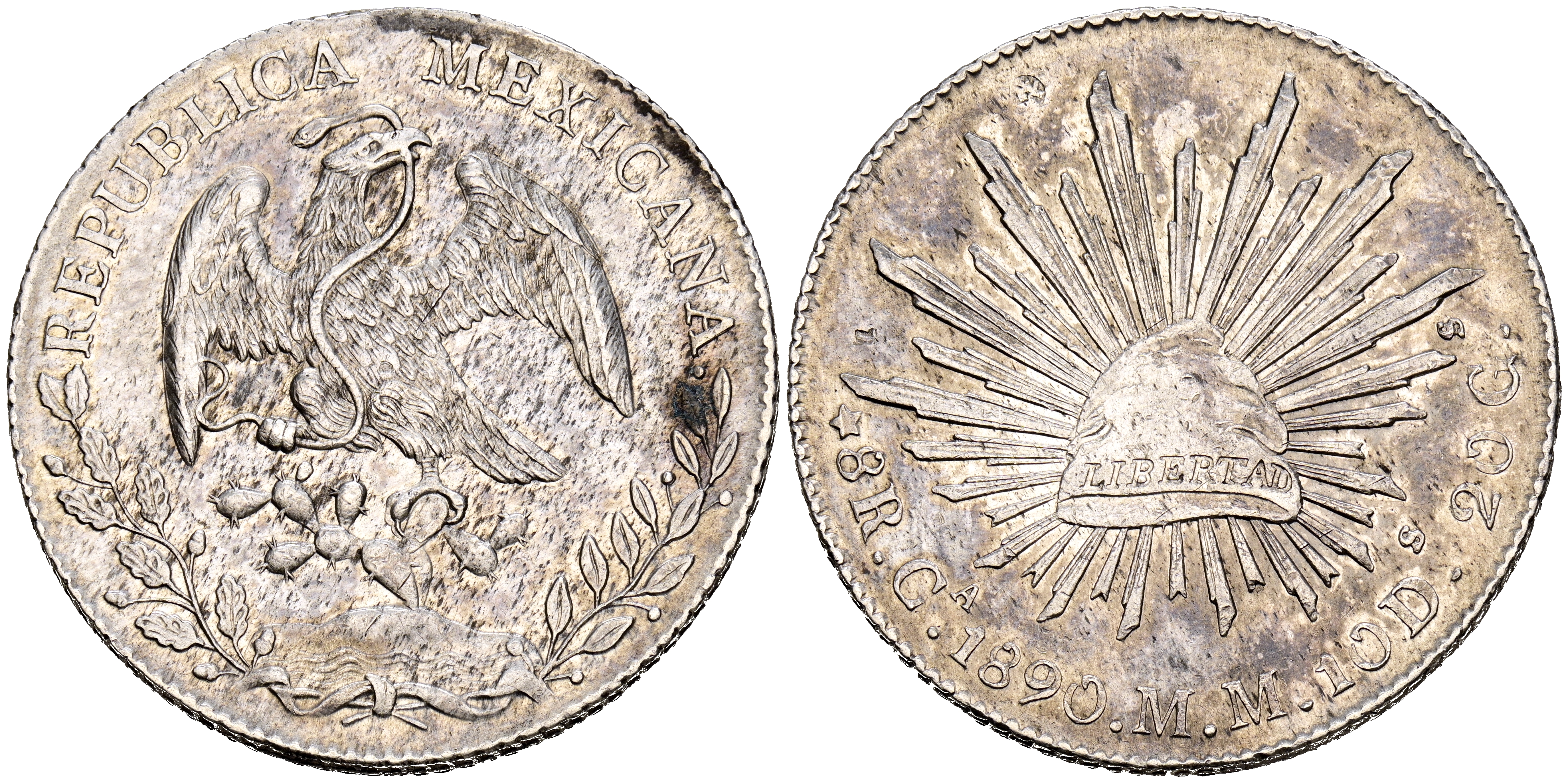 MÉXICO. 8 Reales. (Ar. 26,96g/39mm). 1890. Chihuahua MM. (Km#377.2). MBC+.