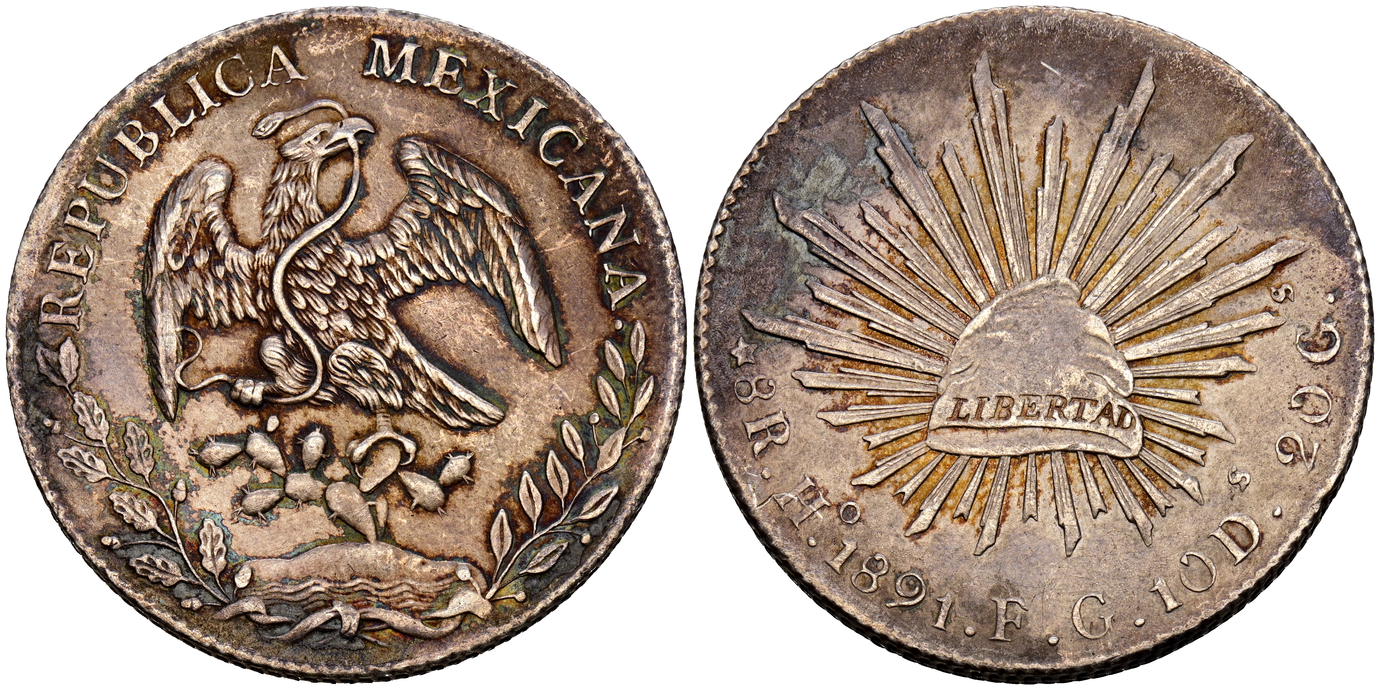 MÉXICO. 8 Reales. (Ar. 27,11g/39mm). 1891. Hermosillo FG. (Km#377.9). MBC. Escasa.