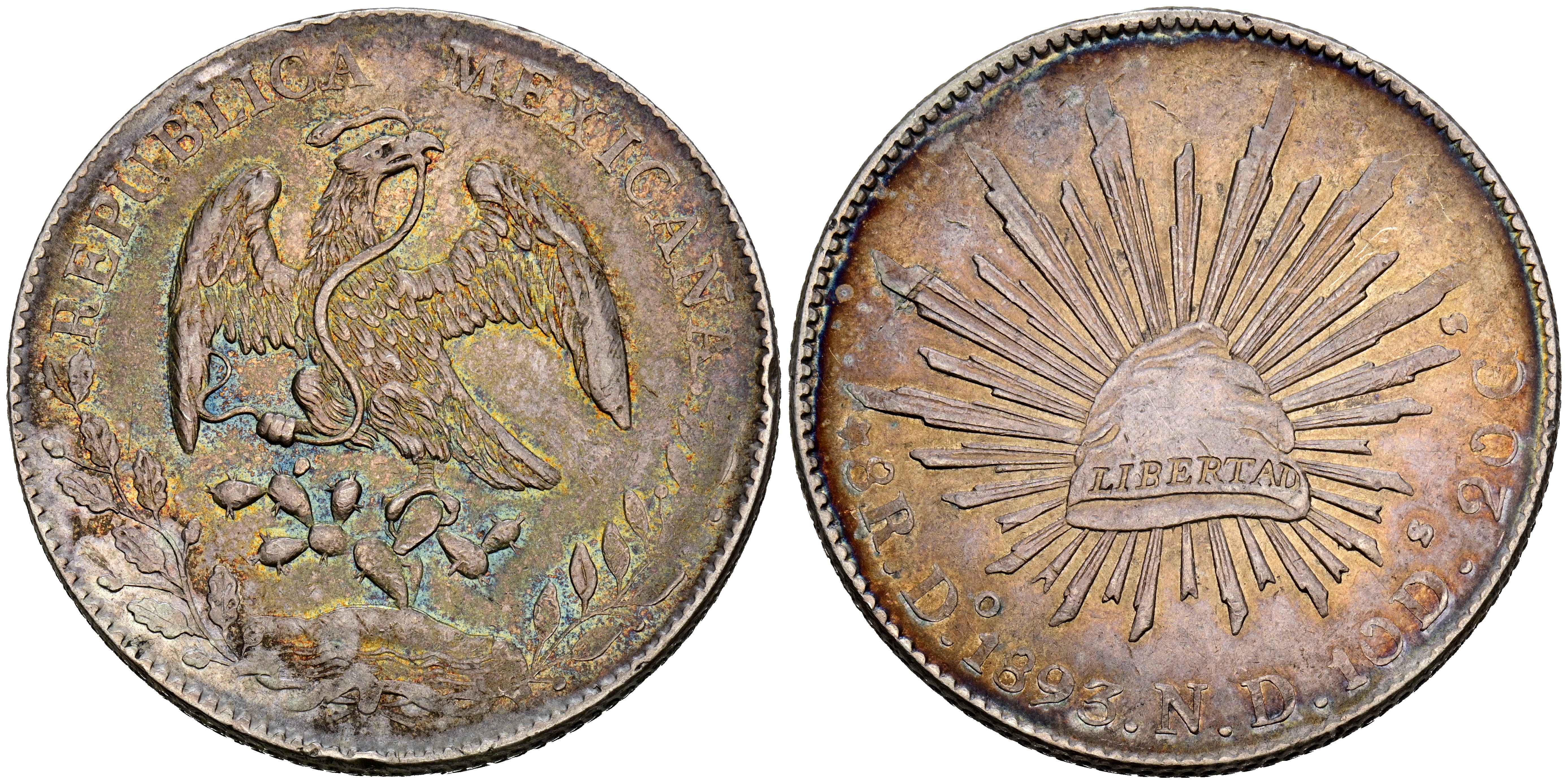 MEXICO. 8 Reales. (Ar. 26,97g/39mm). 1893. Durango ND. (Km#377.4). MBC+. Bonita pátina.