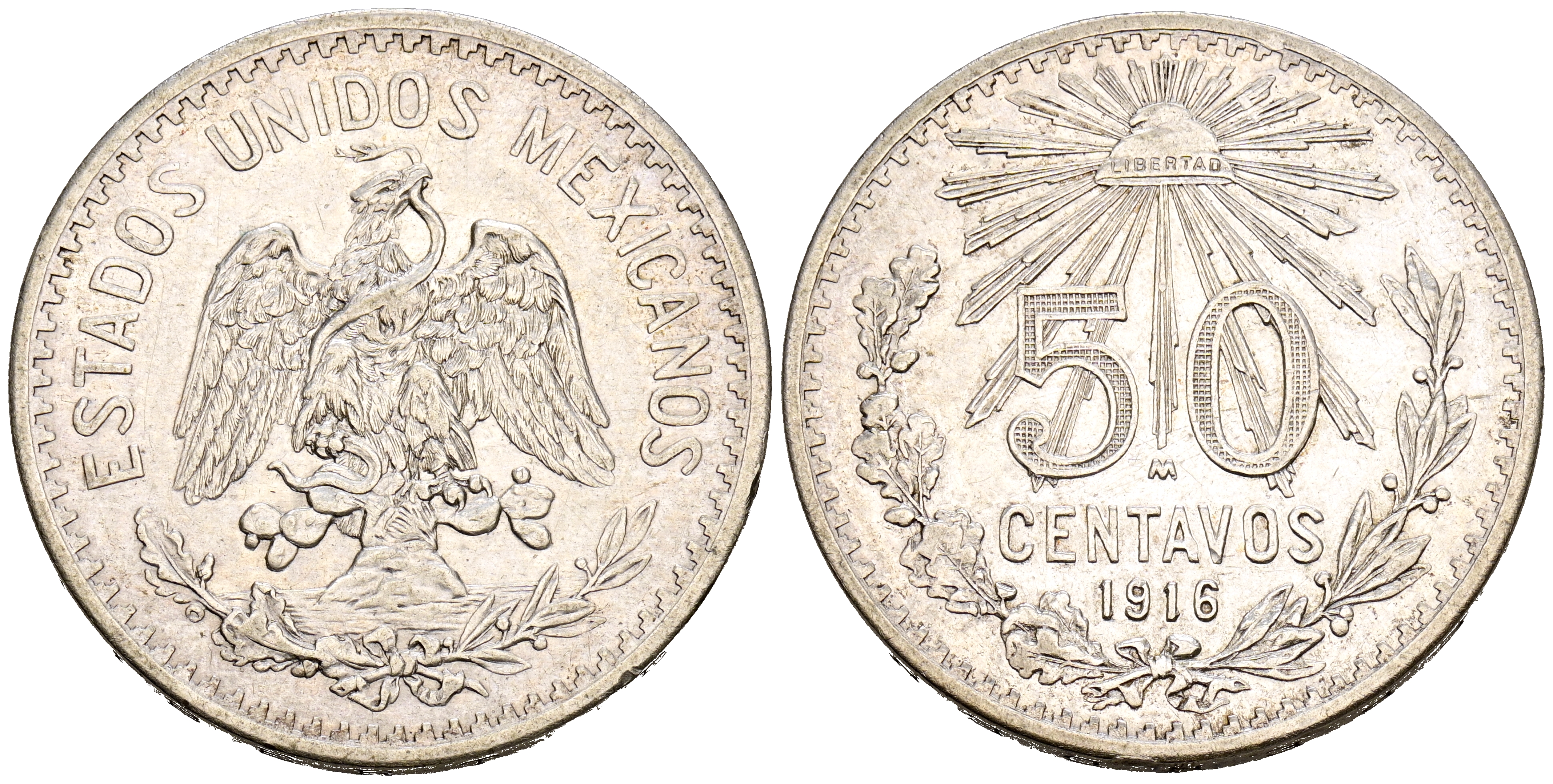 MÉXICO. 50 Centavos. (Ar. 12,46g/30mm). 1916. (Km#445). EBC-. Escasa y más así.
