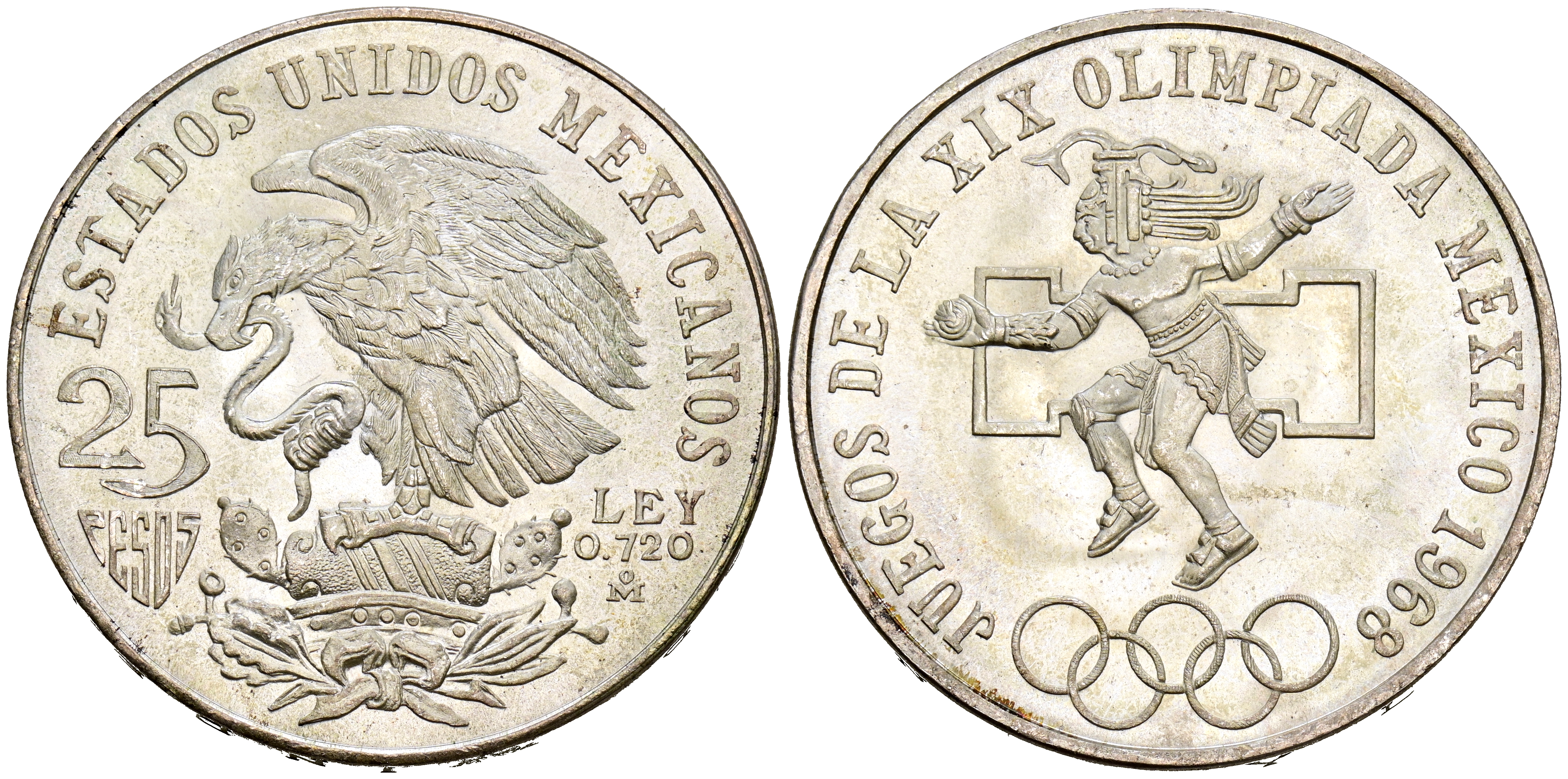 MÉXICO. 25 Pesos. (Ar. 22,41g/38mm). 1968. Juegos Olímpicos de México '68. (Km#468). SC.