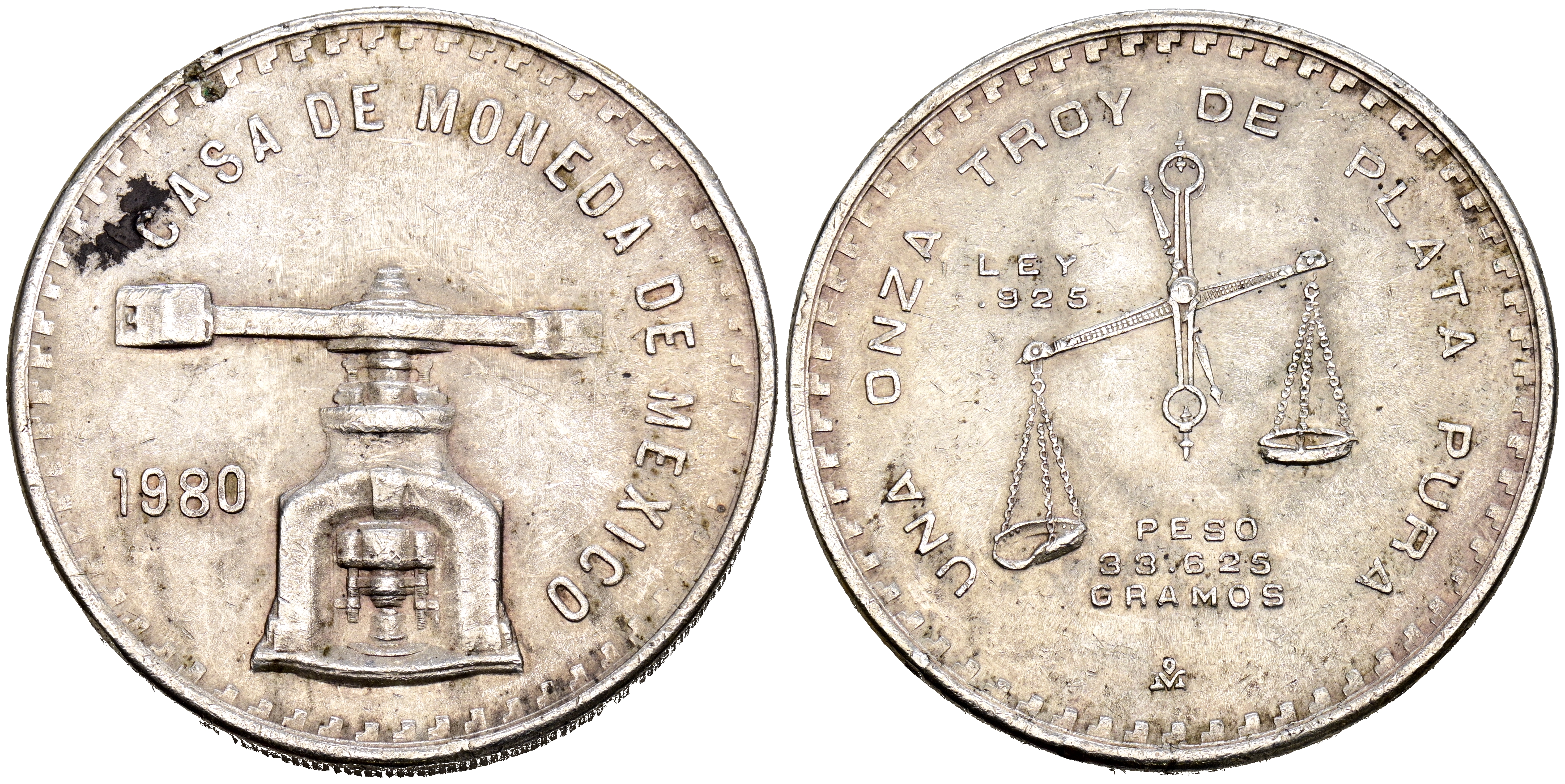 MÉXICO. 1 Onza Troy de Plata. (Ar. 33,66g/42mm). 1980. (Km#M49b). MBC+.