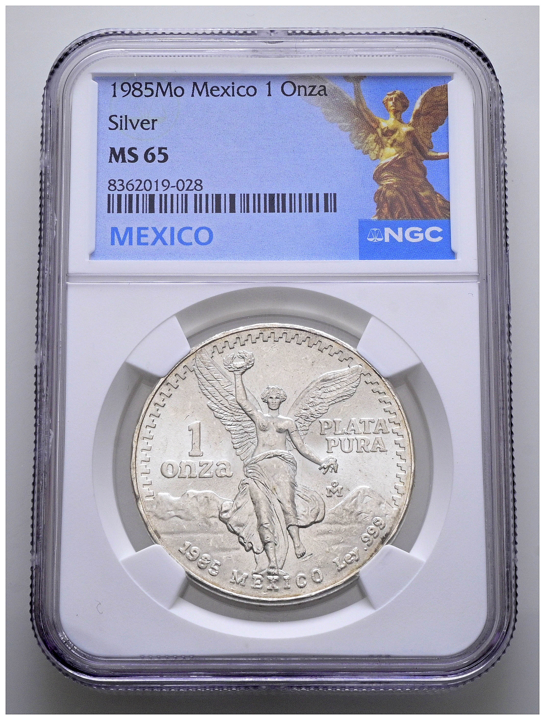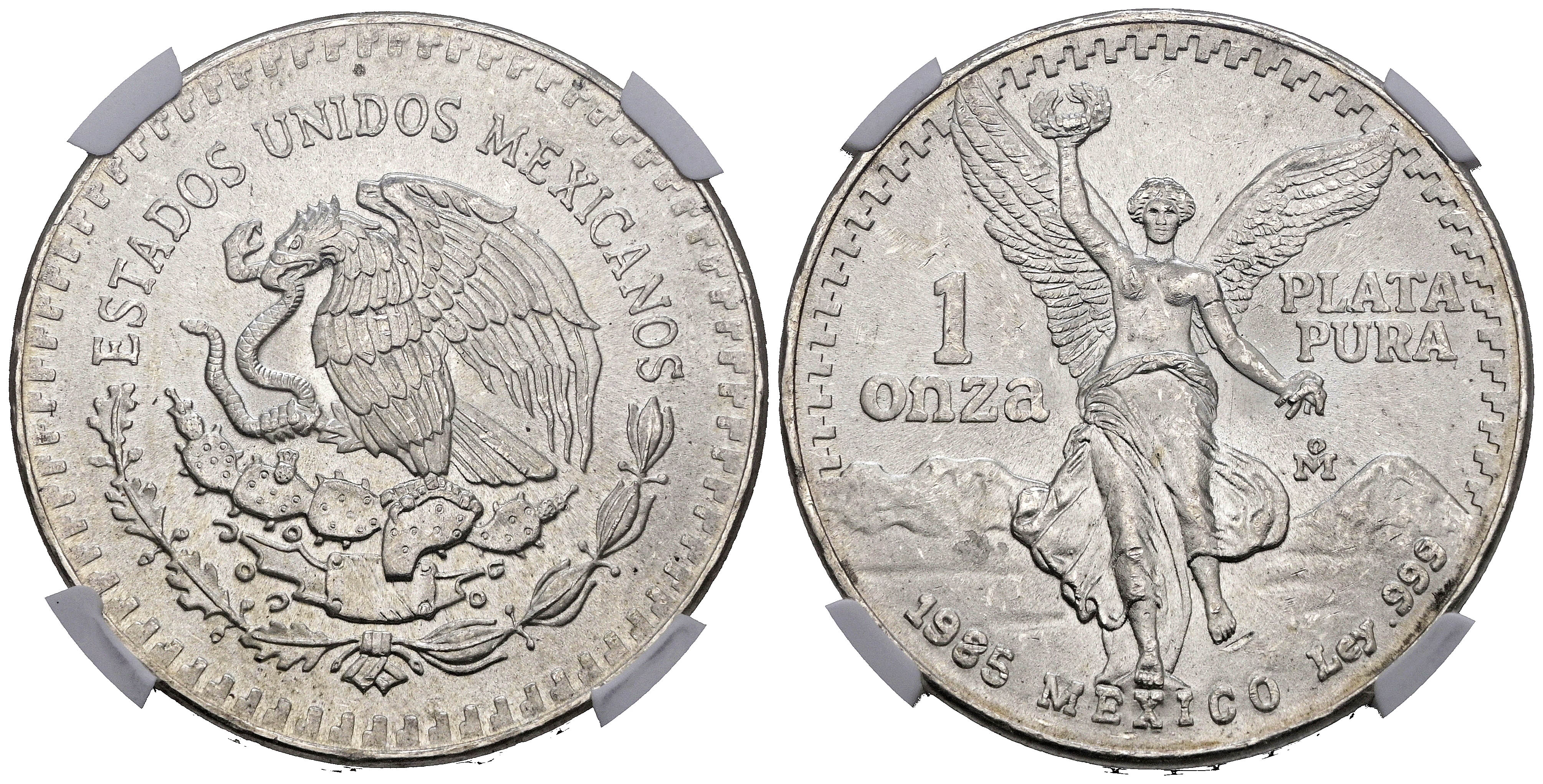 MÉXICO. 1 Onza. (Ar. 31,10g/36mm)*. 1985. (Km#494). Encapsulado por NGC MS 65. *Peso y medida teóricos.