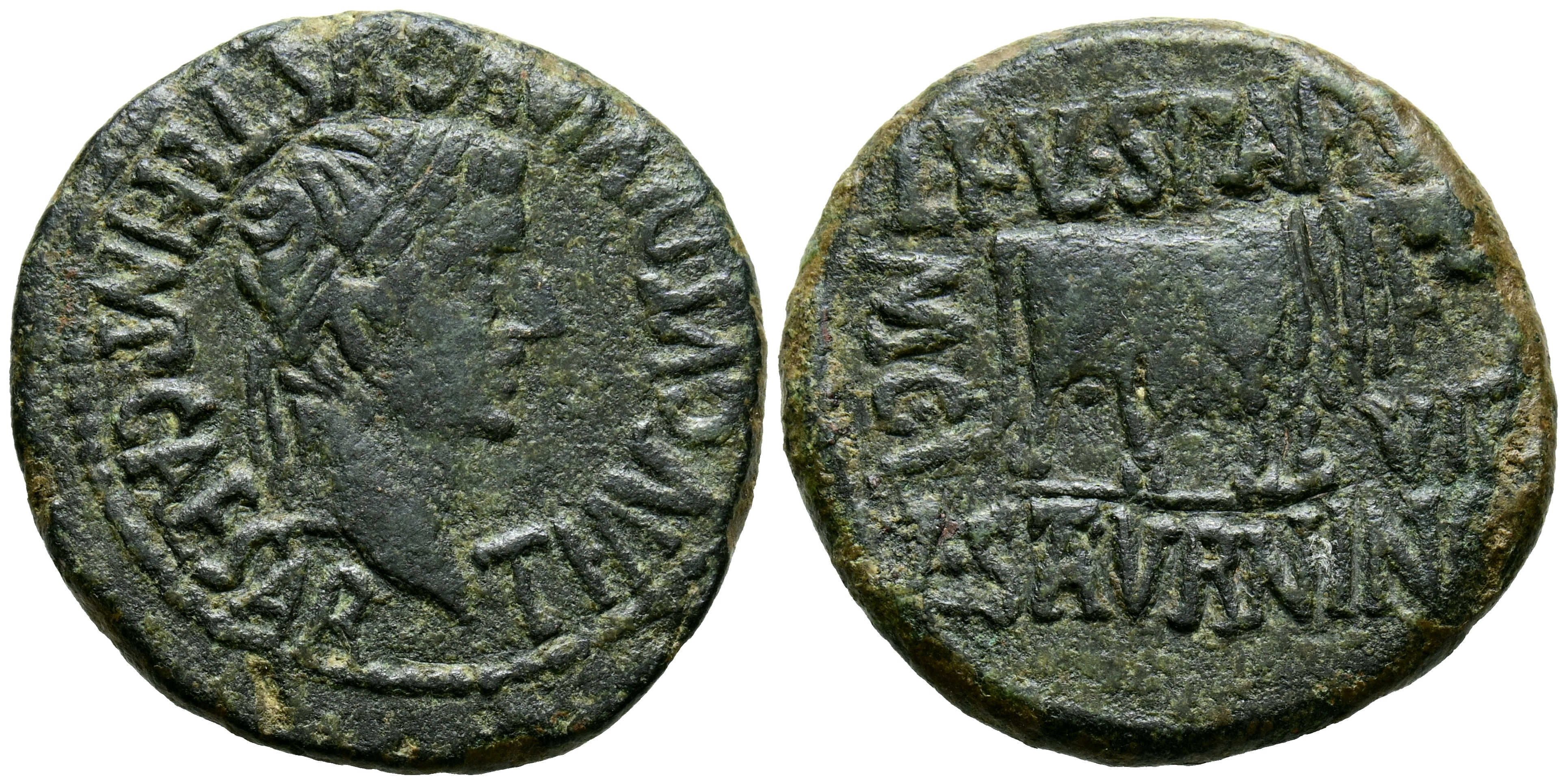 CALAGURRIS (Calahorra, La Rioja). As. (Ae. 11,64g/28mm). 14-36 d.C. (FAB-429). Anv: Cabeza laureada de Tiberio a derecha, alrededor leyenda: TI AVGVS DIVI AVGVSTI F IMP CAESAR. Rev: Toro a derecha, alrededor leyenda: L FVL SPARSO L SATVRNINO II VIR MCI. MBC.