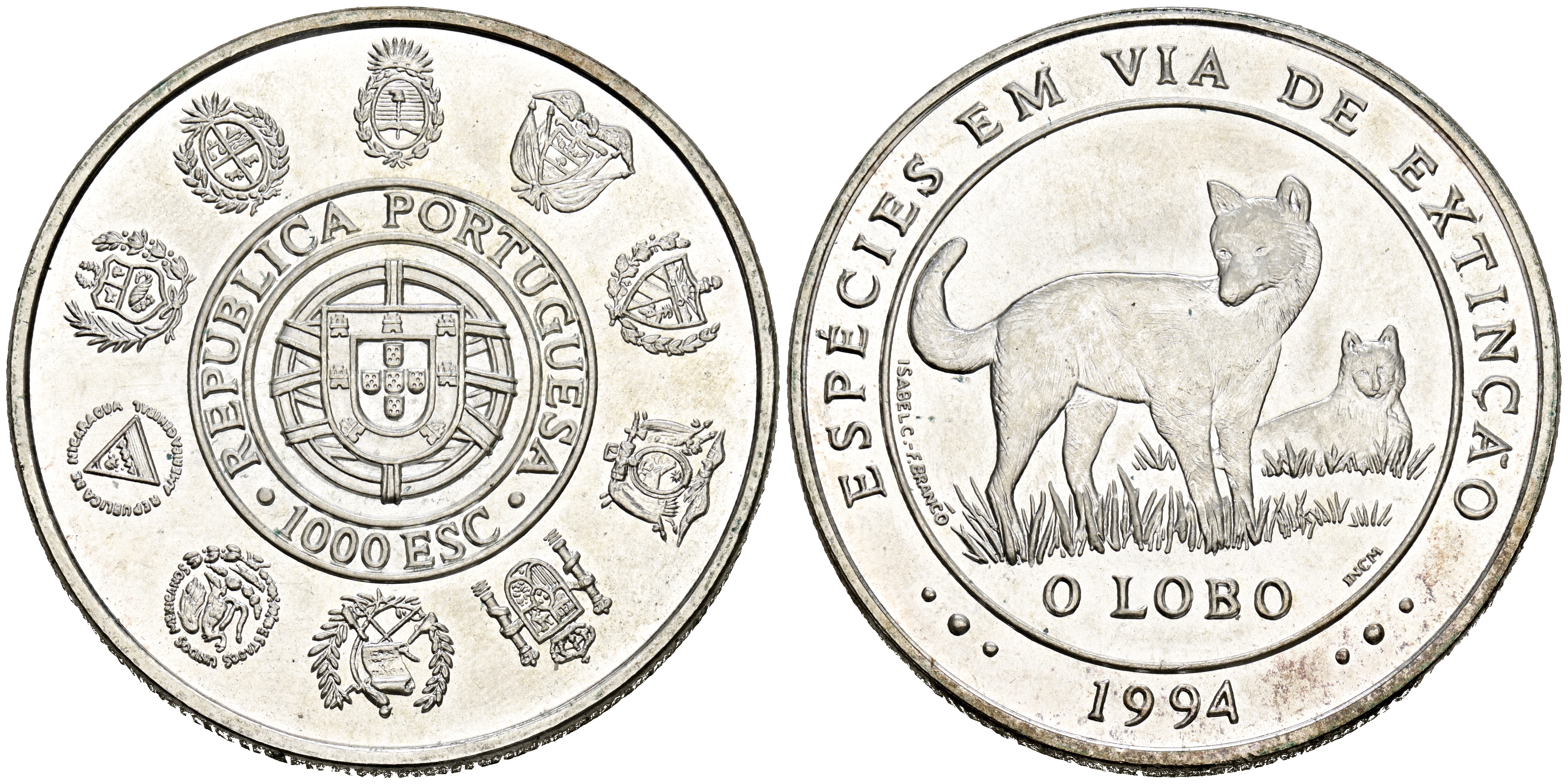 PORTUGAL. 1000 Escudos. (Ar. 27,03g/40mm). 1994. II Serie Iberoamericana. "O Lobo". (Km#676). EBC. Escasa.