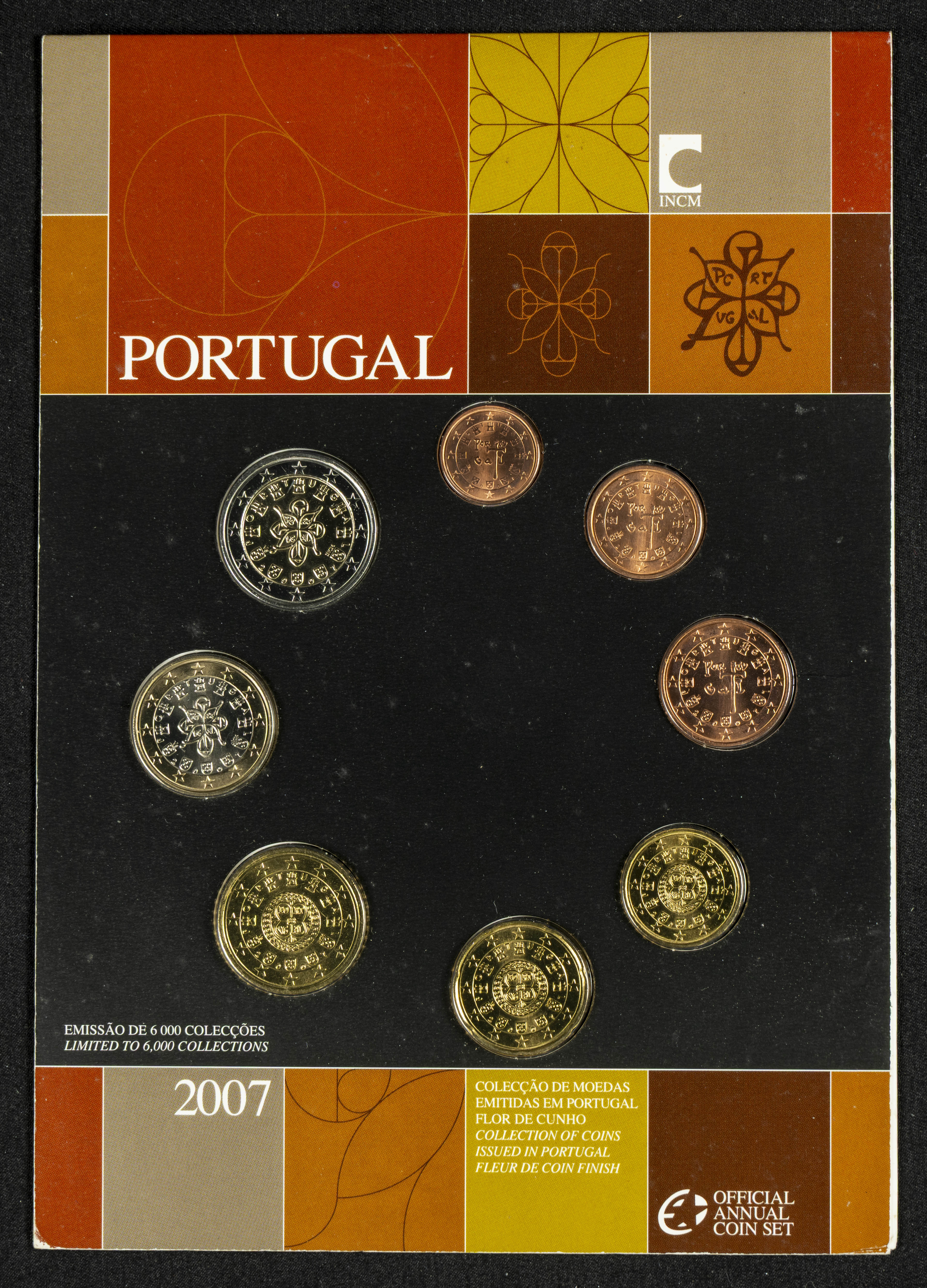PORTUGAL. Serie Anual 2007. Set oficial compuesto por 8 Valores comprendidos entre 1 Céntimo y 2 Euros. FDC. Muy escaso.