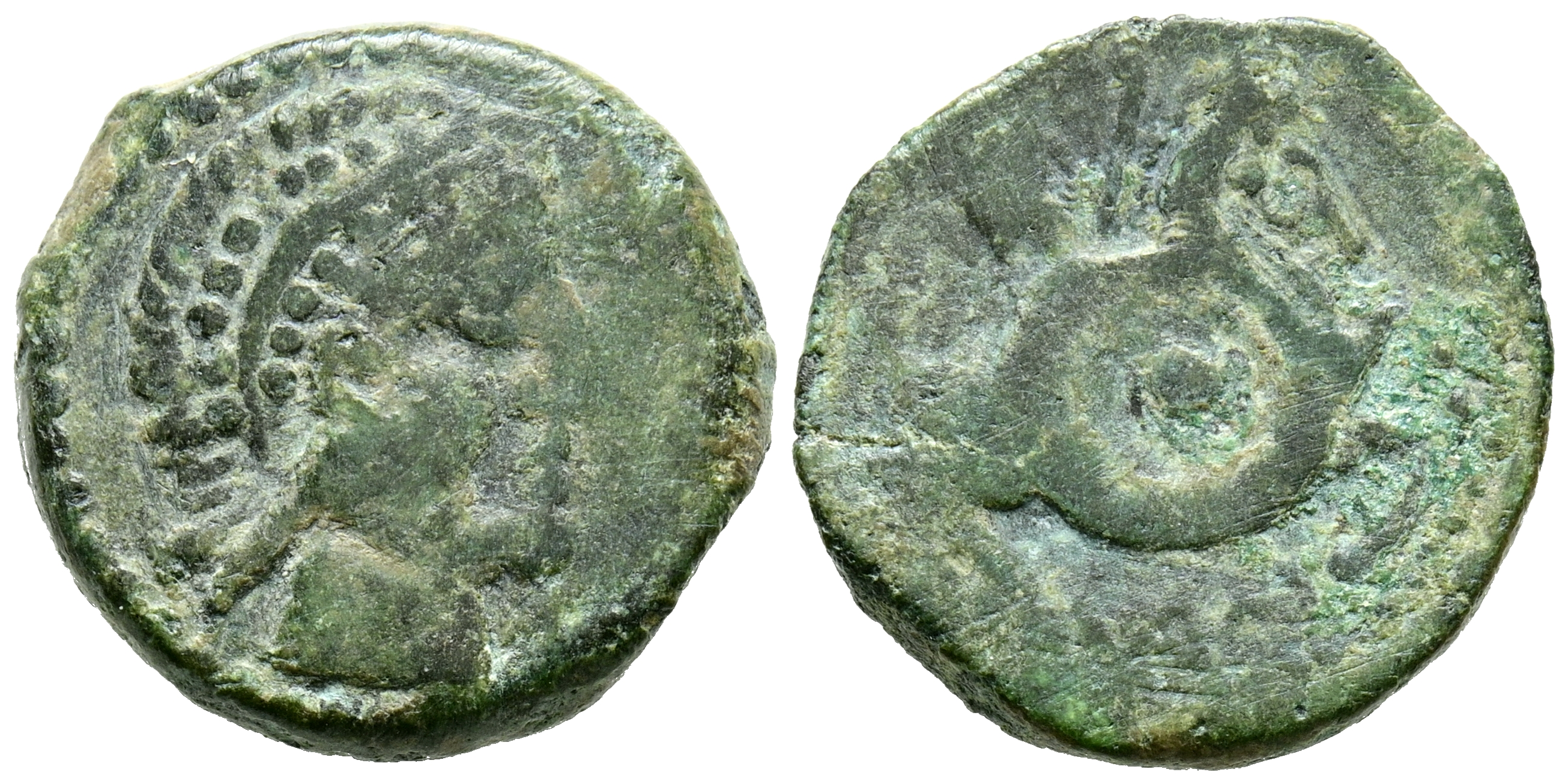 CARISA (cerca de Bornos, Cádiz). Semifinales. (Ae. 5,16g/18mm). 50 a.C. (FAB-448). Anv: Cabeza masculina diademada a derecha. Rev: Jinete con lanza y escudo a derecha, debajo leyenda invertida: CARIS. MBC/MBC-.