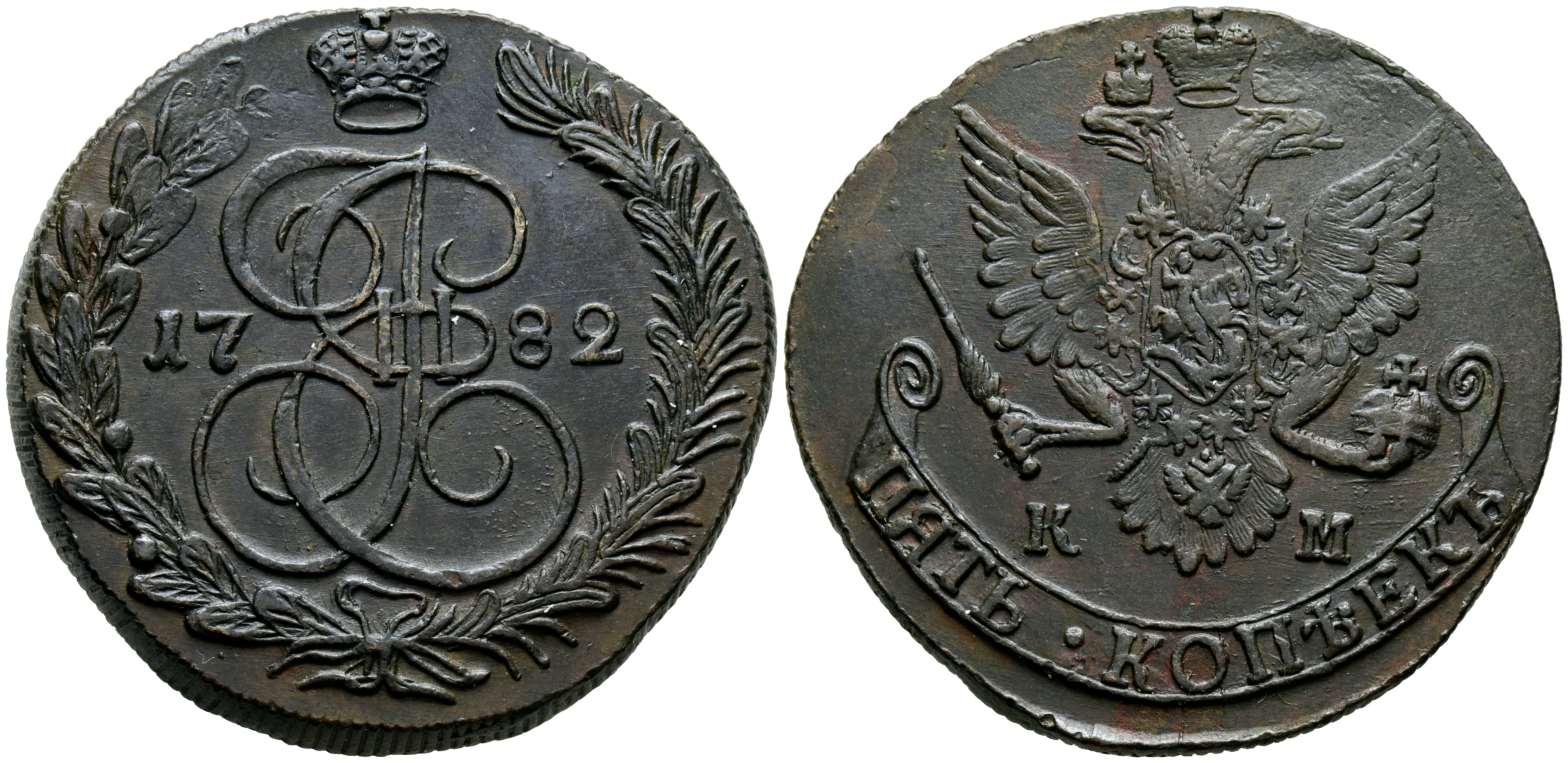 RUSIA, Catalina II. 5 Kopeks. (Ae. 47,43g/43mm). 1782. Suzun KM. (Km#59.5). EBC-. Escasa.