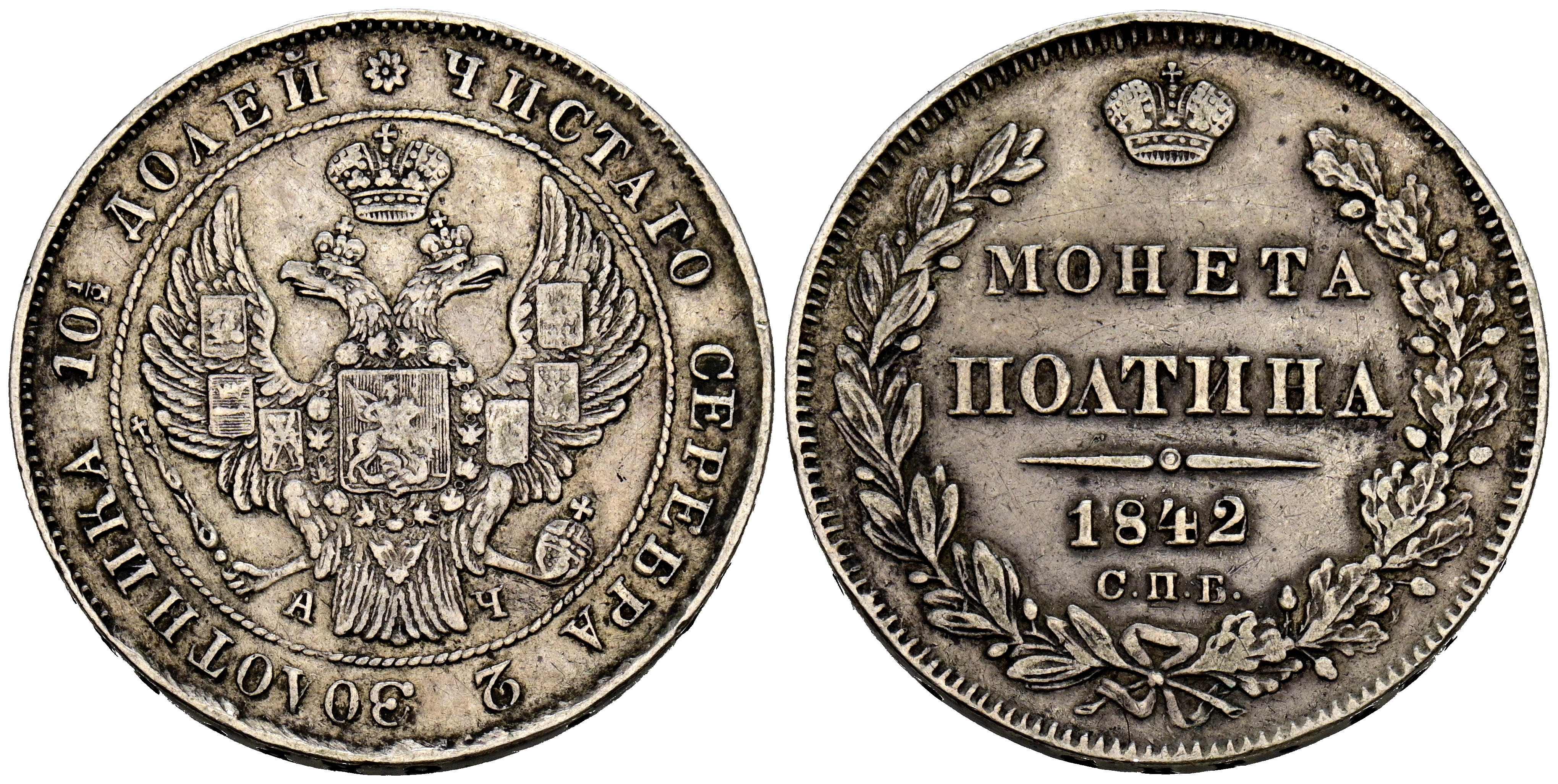 RUSIA, Nicolás I. 1 Rublo. (Ar. 10,60g/29mm). 1842. San Petersburgo. (Km#168.1). MBC.