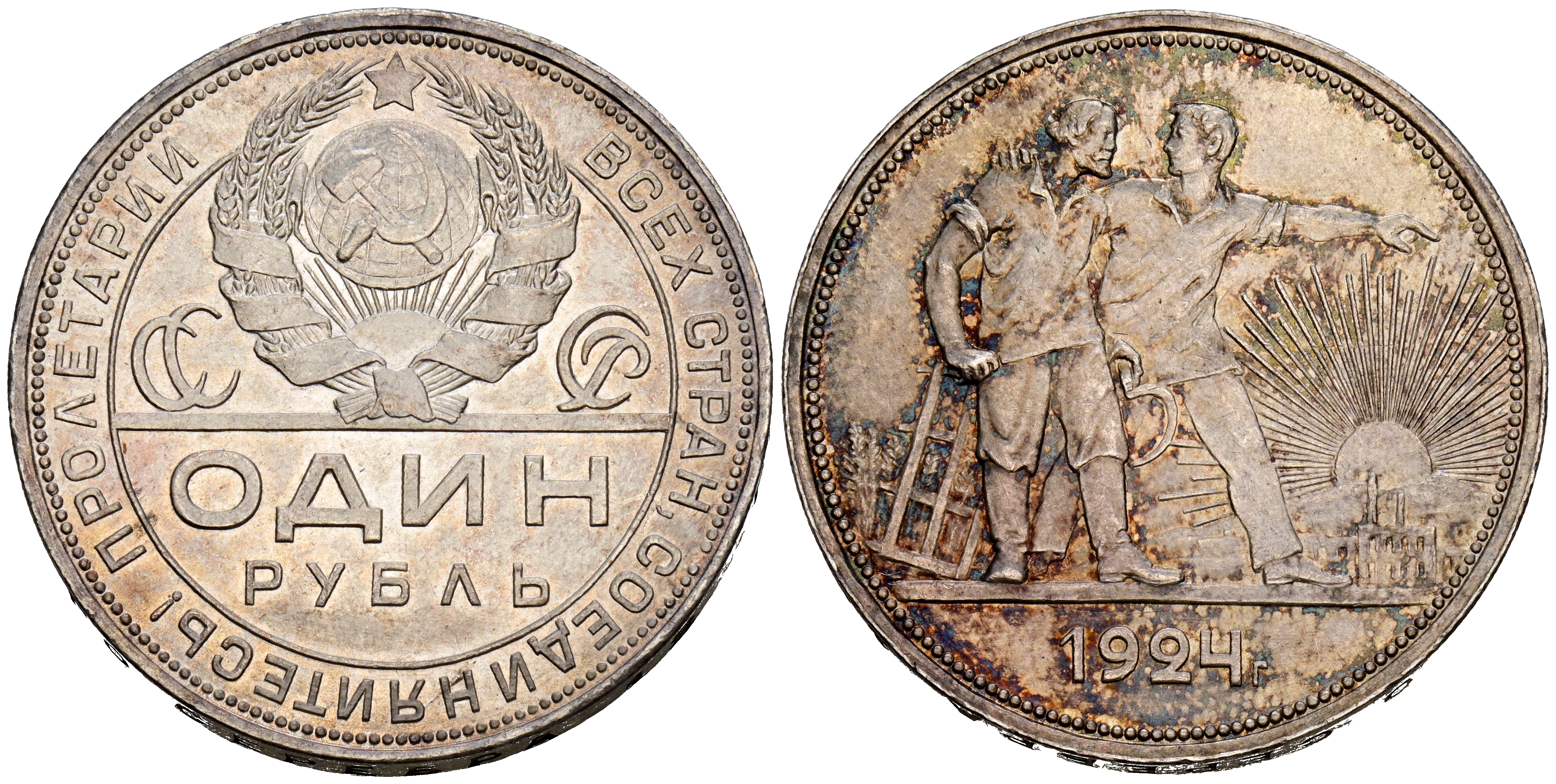 RUSIA, Unión Soviética. 1 Rublo. (Ar. 20,04g/34mm). 1924. (Km#90.1). EBC/MBC+.
