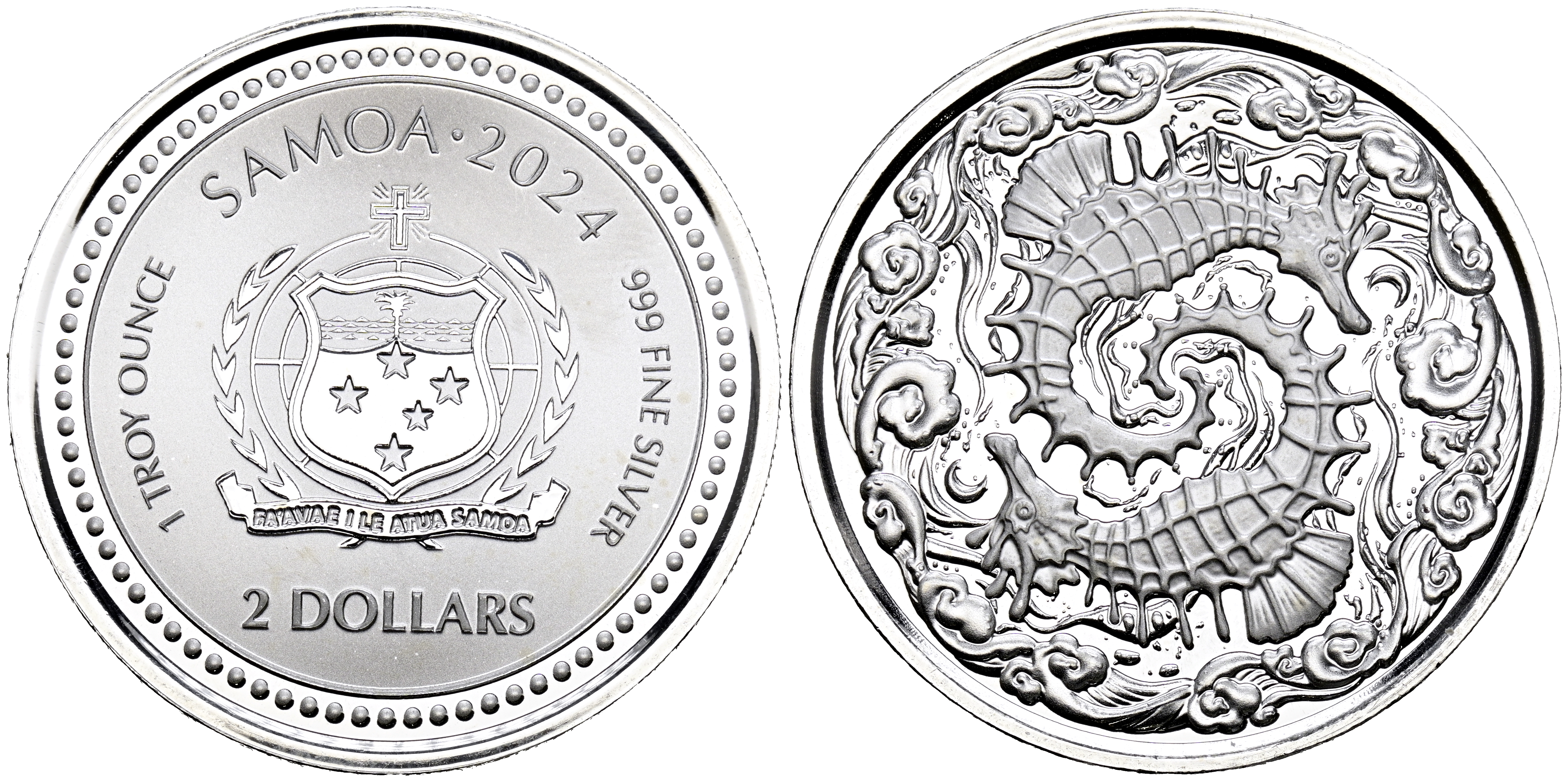 SAMOA. 2 Dollars. (Ar. 31,30g/39mm). 2024. Dragón. Plata de 0,999 milésimas. PROOF.