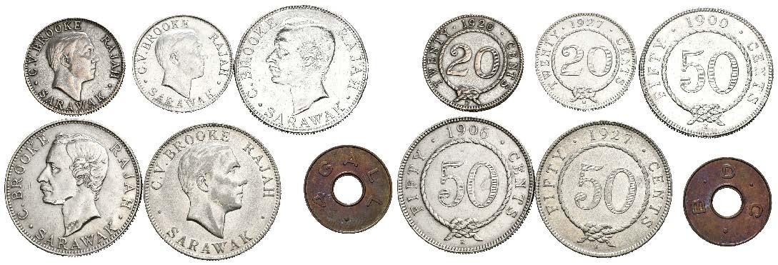 SARAWAK (Estado de Malasia). Magnífica colección formada por 65 monedas acuñadas entre 1863 y 1927. Durante este periodo encontraremos monedas acuñadas a nombre de tres Rajah´s diferentes: Sir James Brooke, Sir Charles Johnson Brooke y Sir Charles Vyner Brooke. Los módulos representados van desde los cotizados 1/4 de Cent, en cobre, hasta los 50 Cents acuñados en plata, pasando por una gran cantidad de divisores. Las conservaciones son diversas, destacando algunas piezas en alto nivel de conservación. El conjunto incluye una reproducción de época del cotizado token de época de 1841. A EXAMINAR.