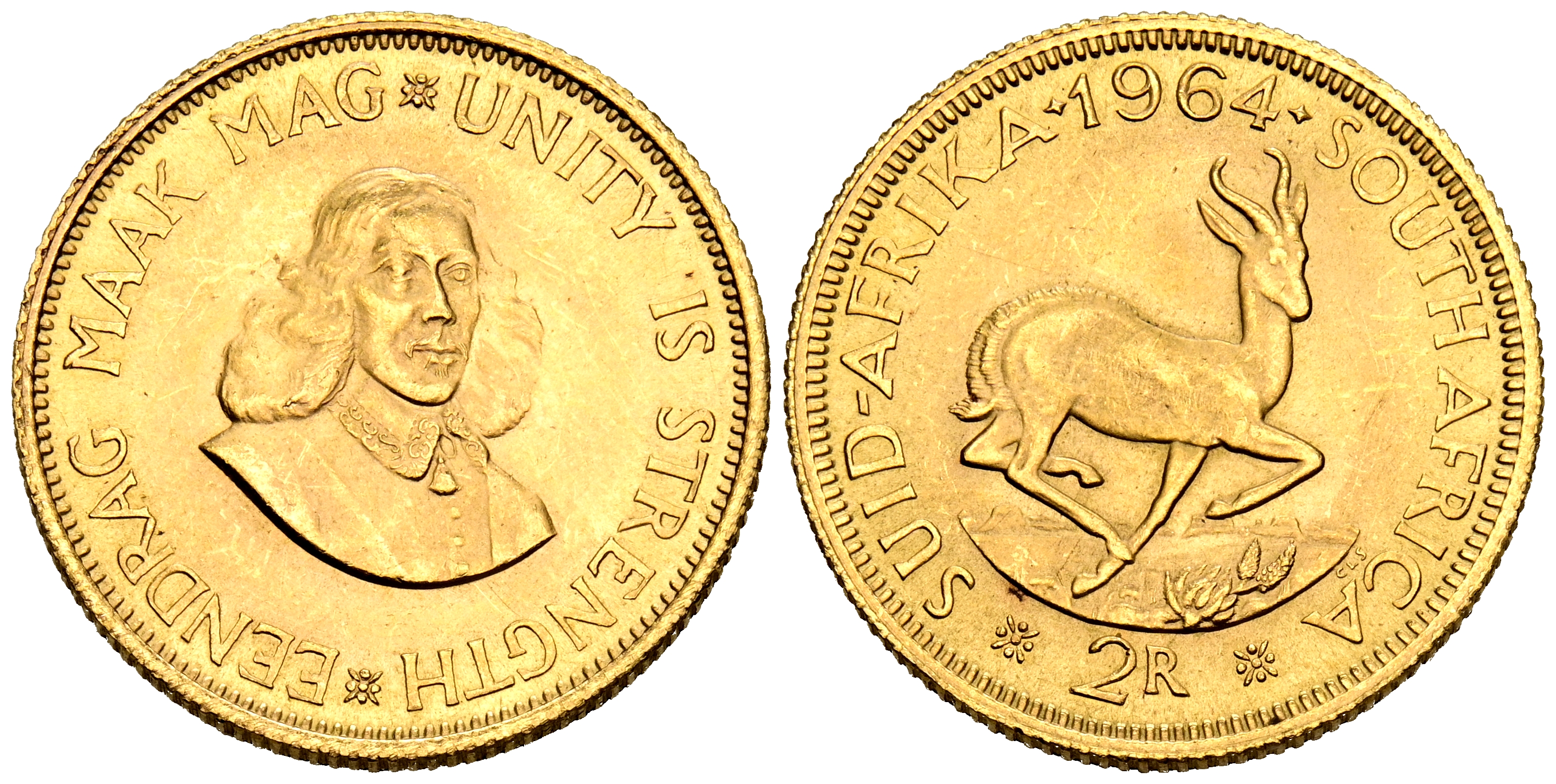 SUDÁFRICA. 2 Rand (Au. 7,99g/22mm). 1964. (Km#64). SC-. Tirada de sólo 3994 unidades.