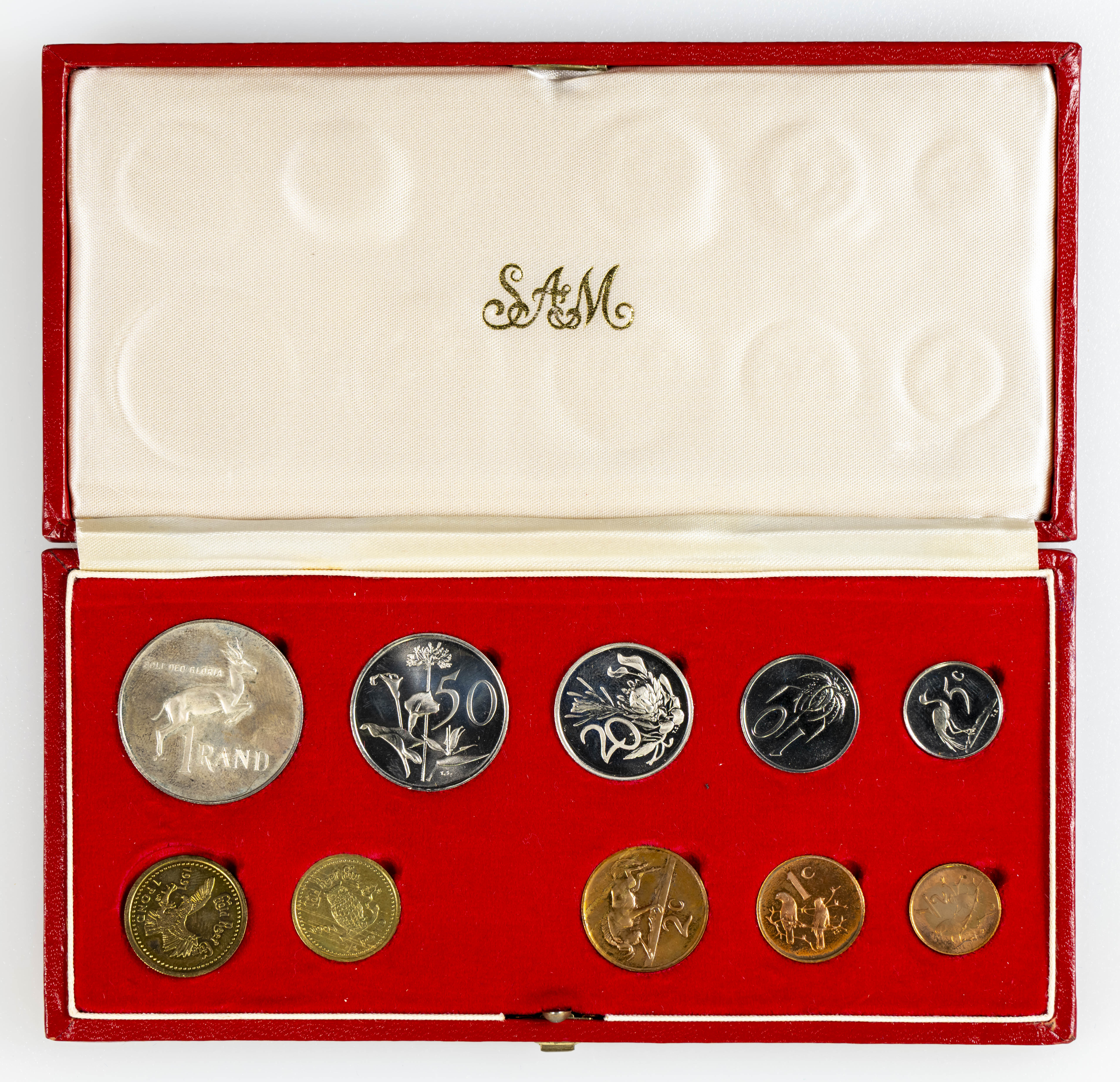 SUDÁFRICA. Serie completa con 10 valores. 1975. Valores comprendidos entre 1/2 Cent y 1 Rand. Presentado en estuche oficial.