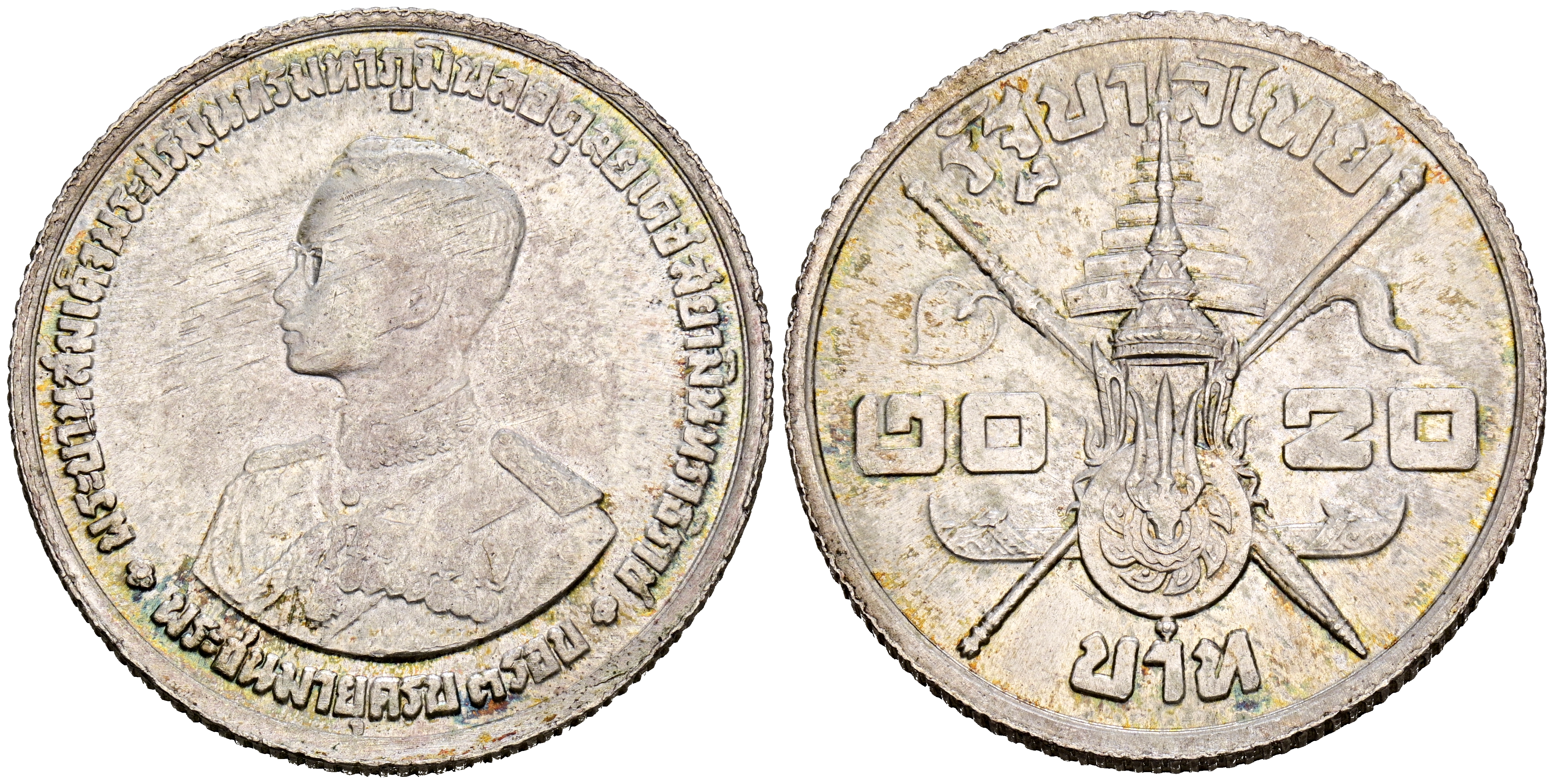TAILANDIA, Rama IX. 20 Baht. (Ar. 19,97g/35mm). 1963. (Km#86). EBC.